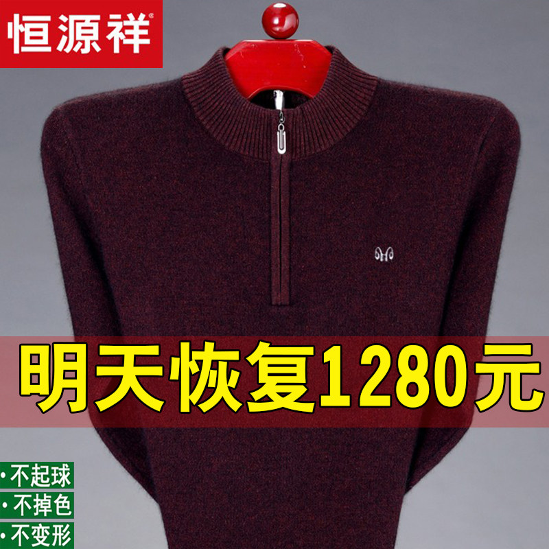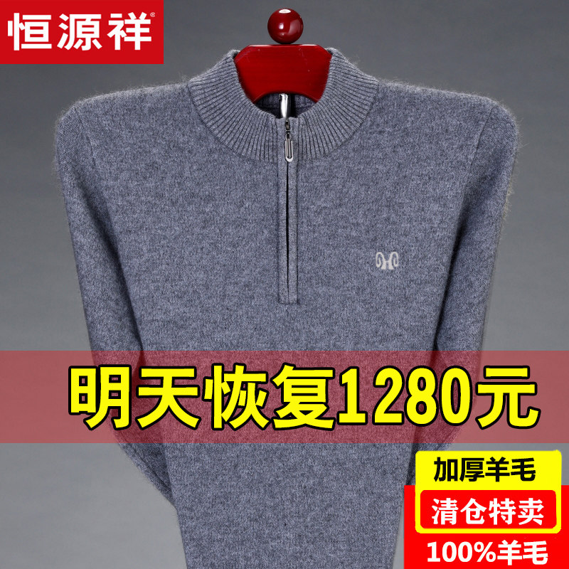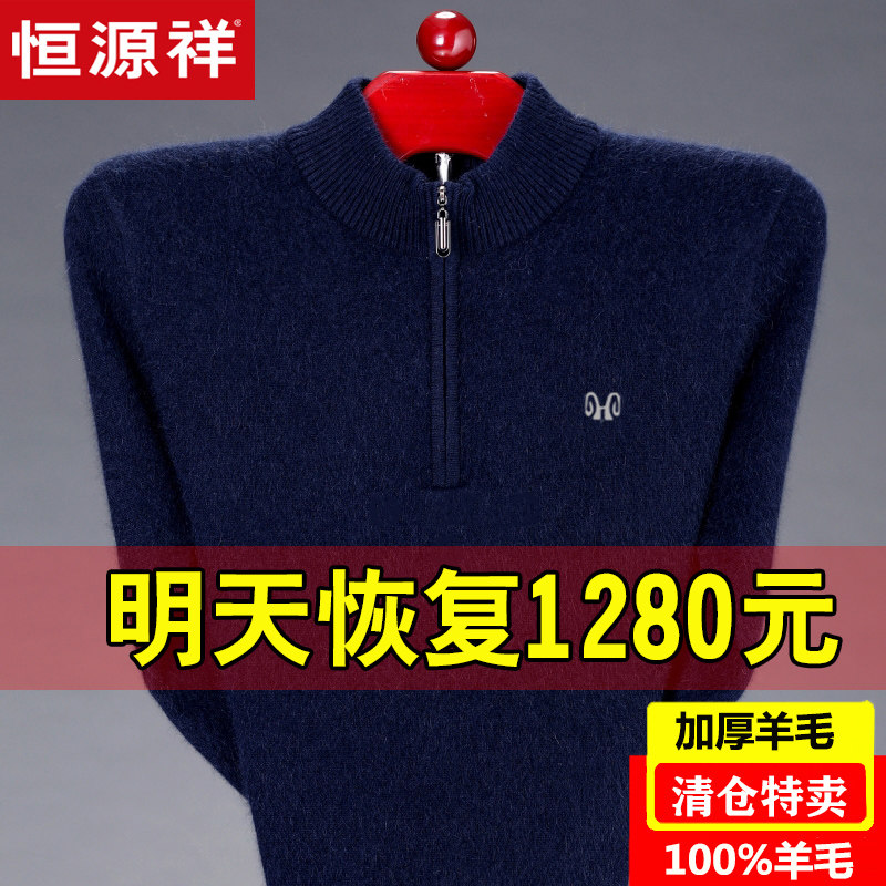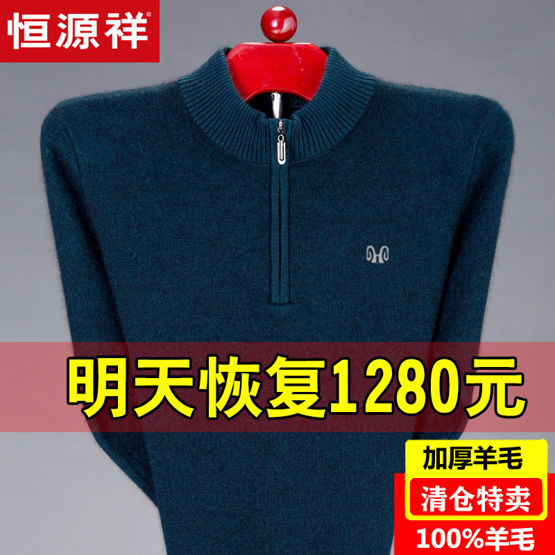 Hengyuanxiang 100% pure wool sweater men's half-height zipper collar middle-aged winter thickened pullover cashmere sweater dad sweater