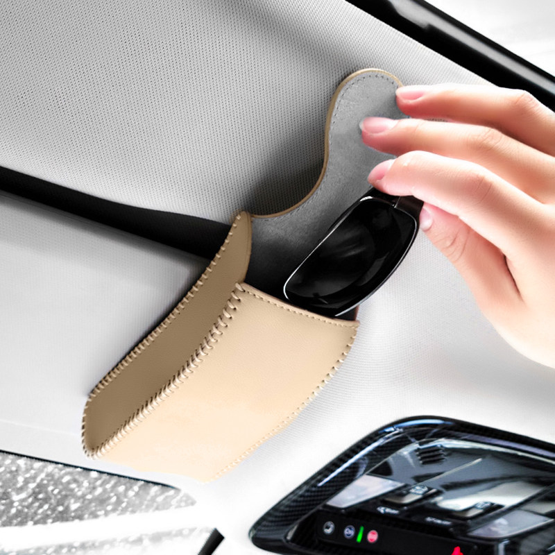 Car hand-sewn glasses box vertical sun visor mirror bag storage box card sunglasses items car supplies Daquan