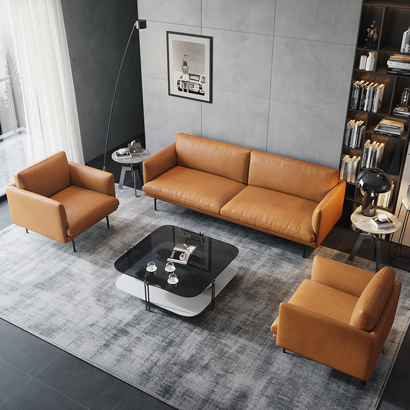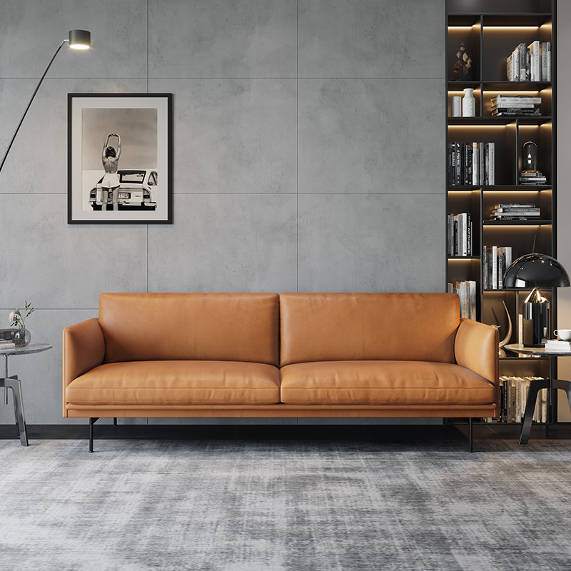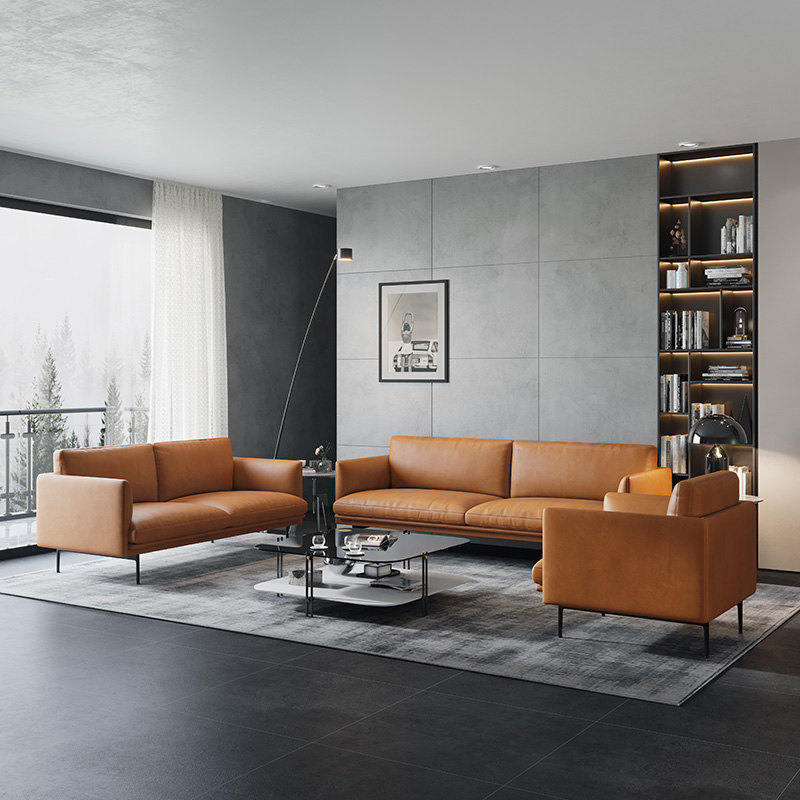 Italian minimalist sofa living room modern minimalist straight three-person small apartment high-end first layer cowhide leather sofa