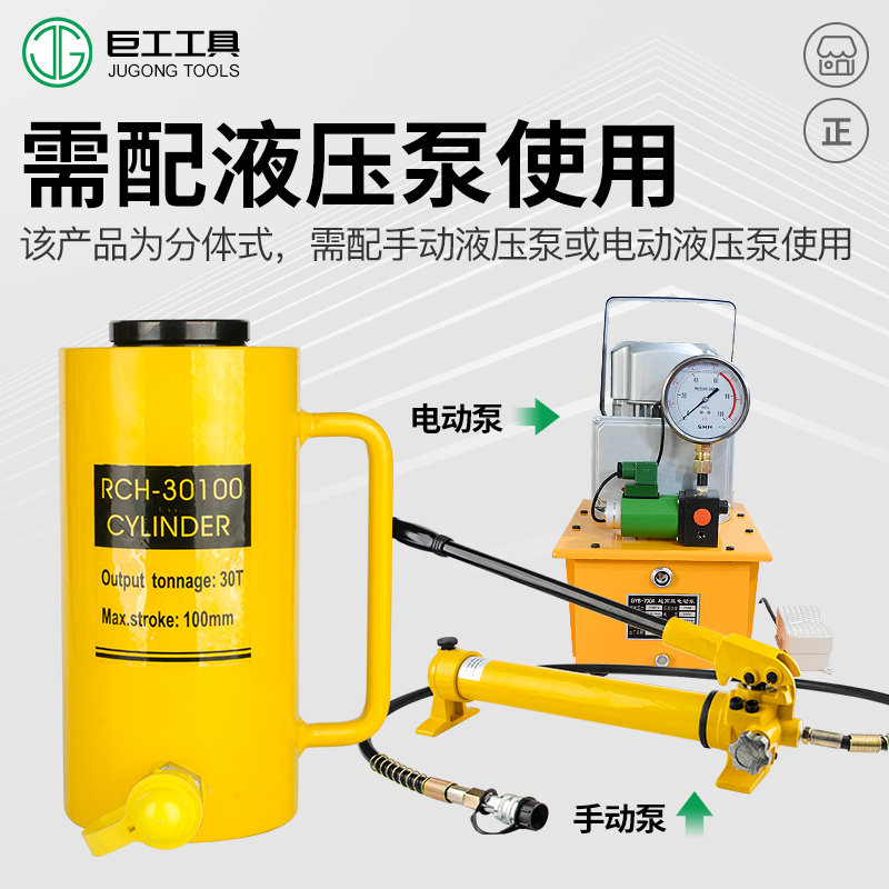 Separated hollow hydraulic jack RCH20T30T60T100T tons double acting hollow oil cylinder manual electric