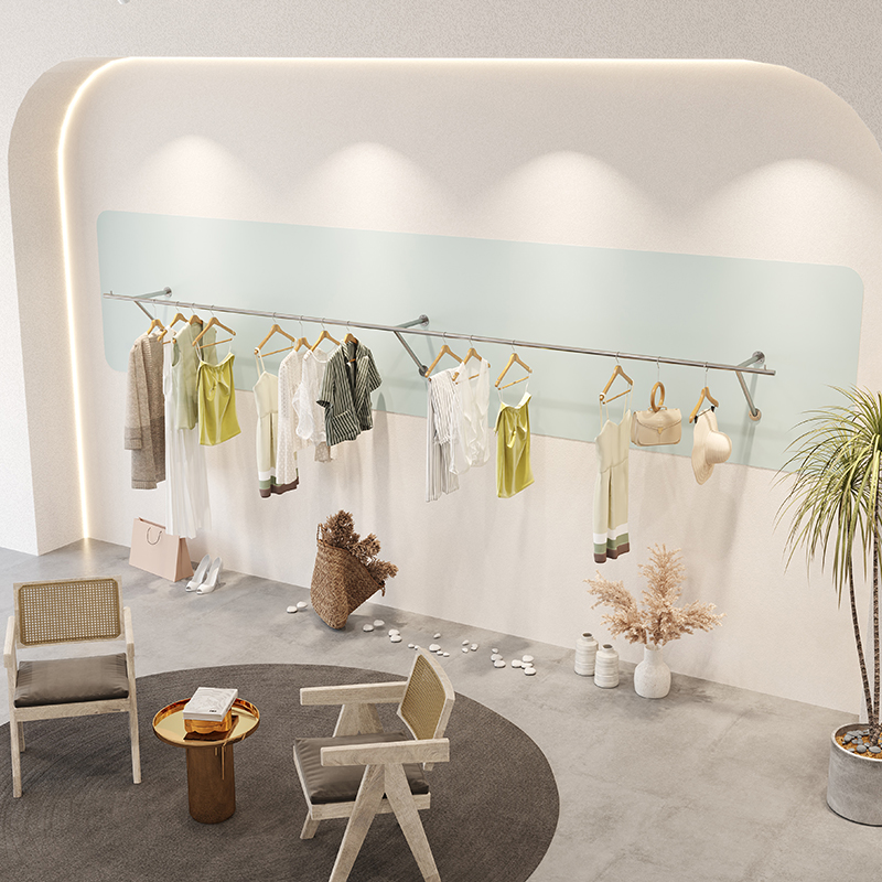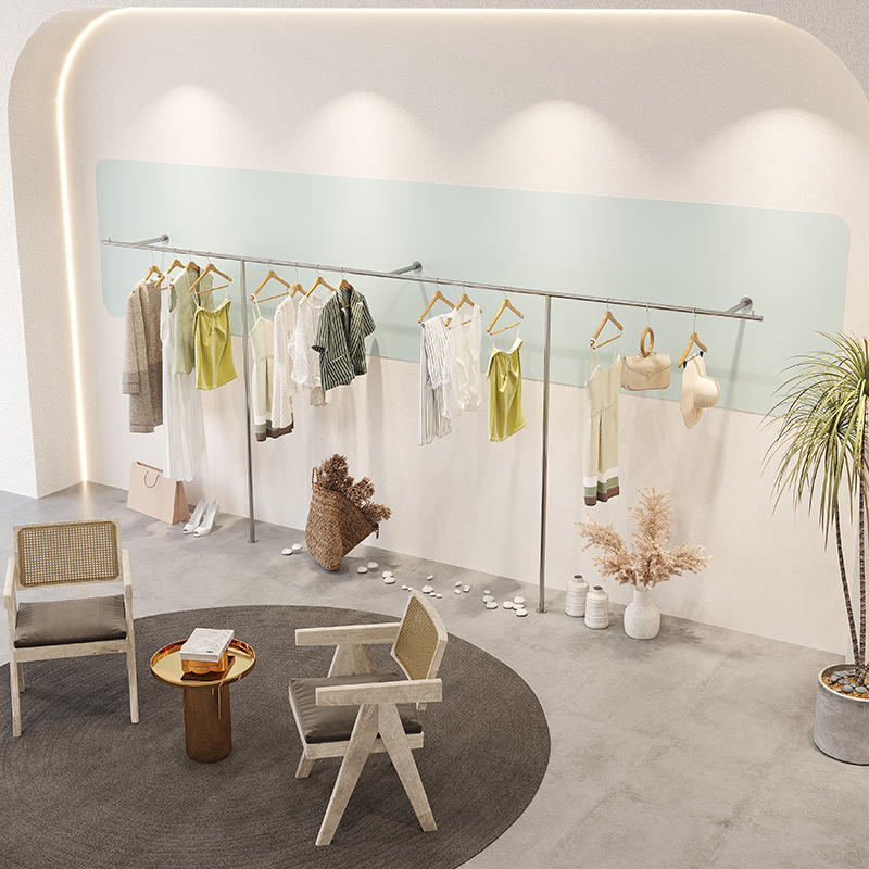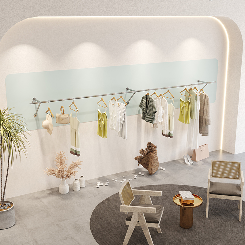 Clothing Store Show Show Display Props Stainless Steel Floor Type Upper Wall Wall-mounted Clothes Hanger Women's Clothing Store Shelving Special