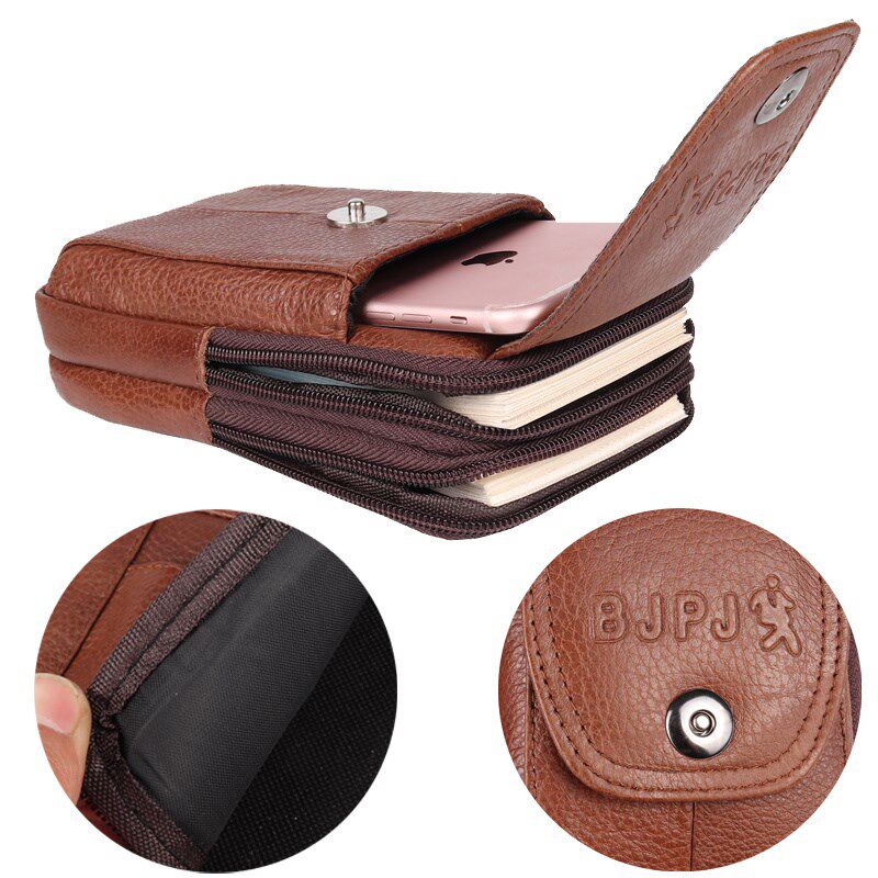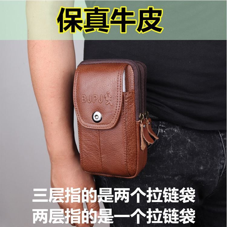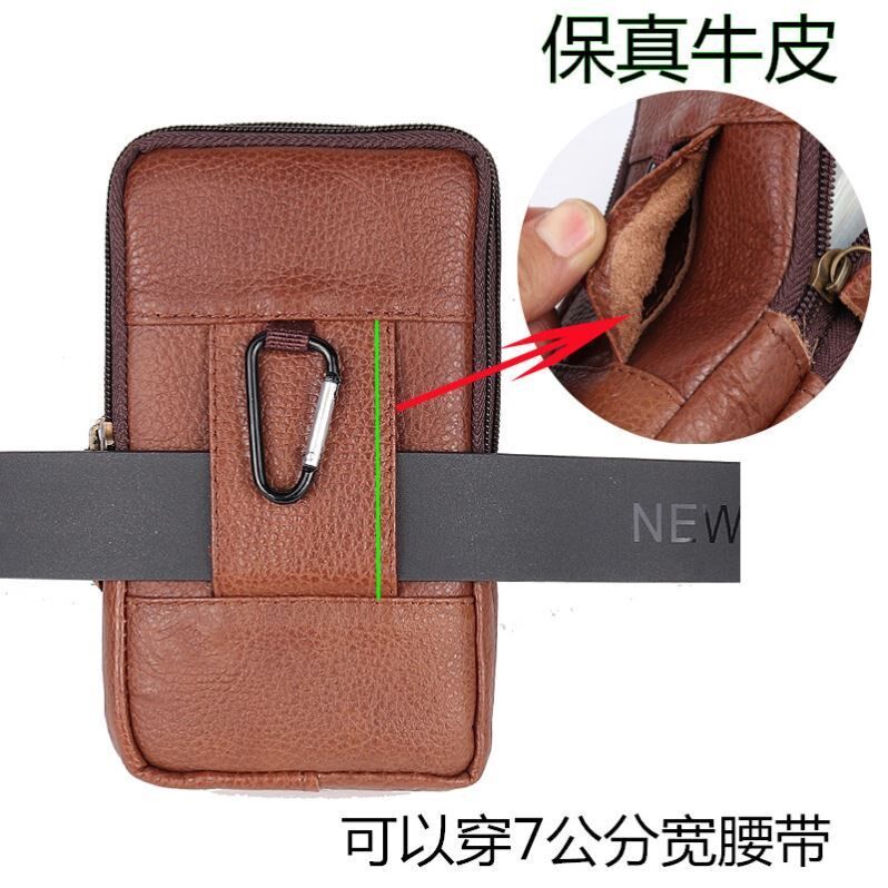 Genuine Leather Waist Bag Men's Pure Cowhide Mobile Phone Bag Outdoor Construction Site Waterproof Hanging Bag Universal Vertical Wearing Belt Hanging Waist Waist Bag