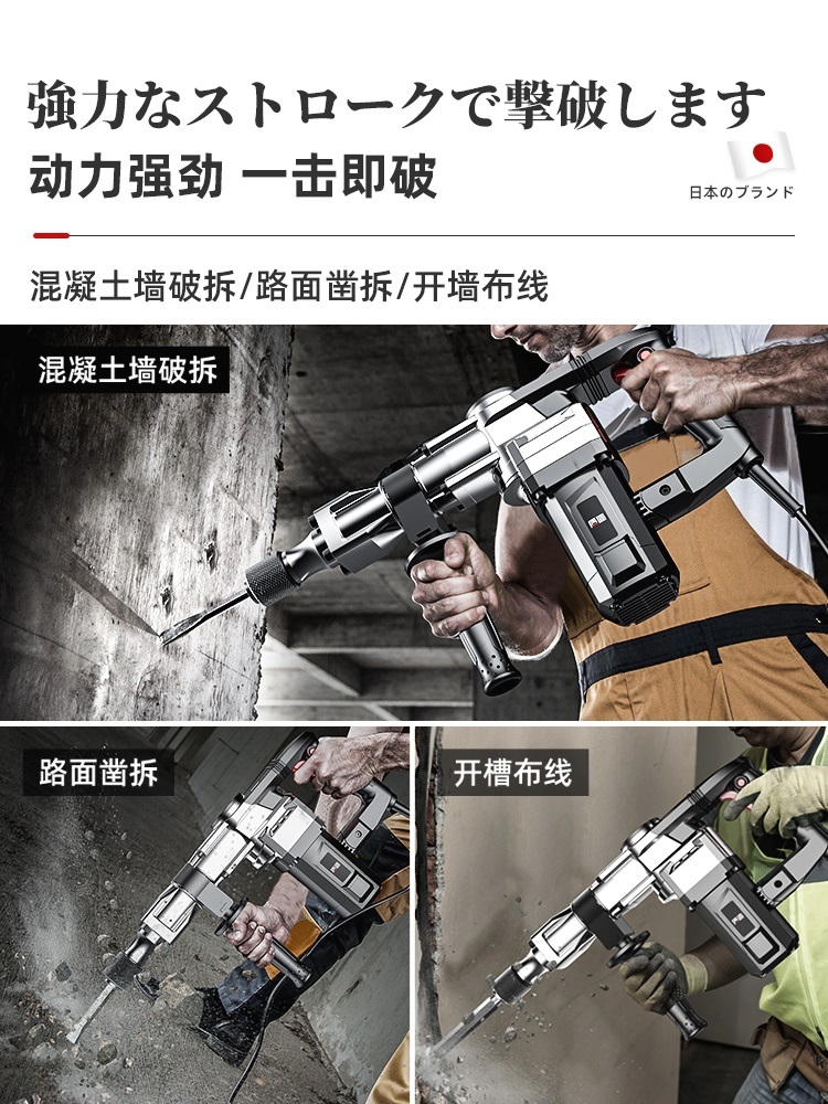 Japanese pick single industrial grade high power concrete chisel professional slot off wall non-hammer drill