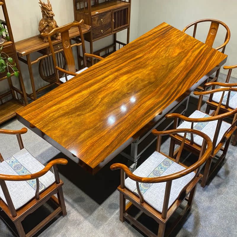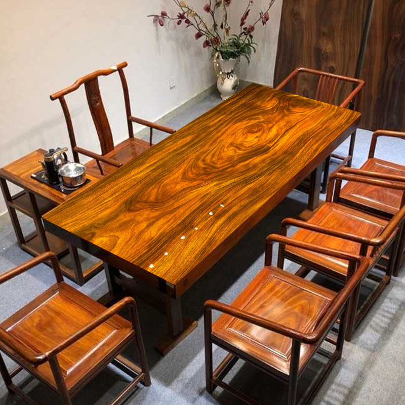 Log Okan solid wood large board tea table and chair combination tea table new Chinese boss table office conference table president table