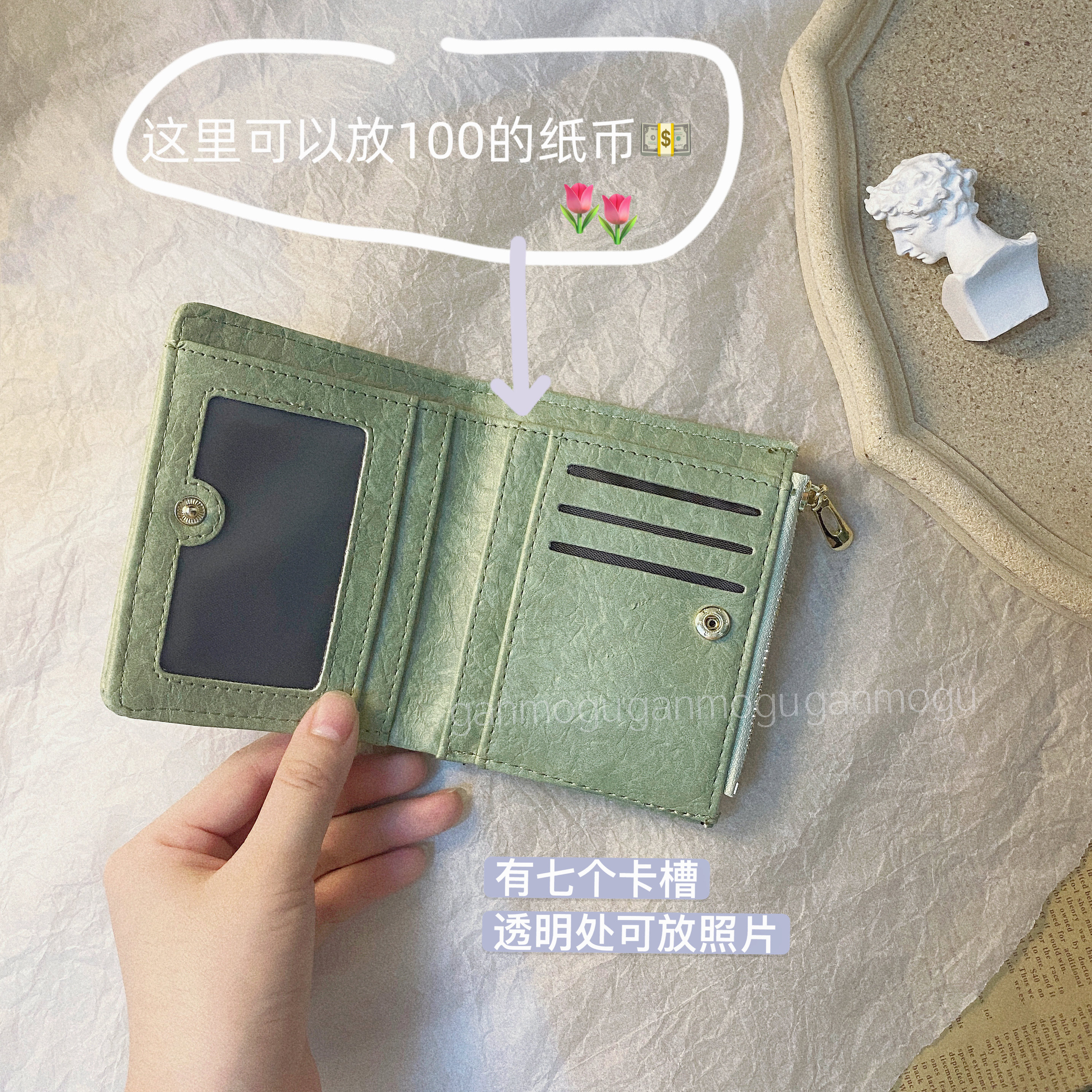 GANMOGU retro small wallet ~ins wallet female short section student European and American fresh folding simple literary buckle