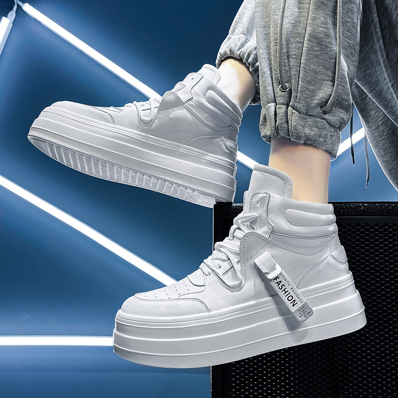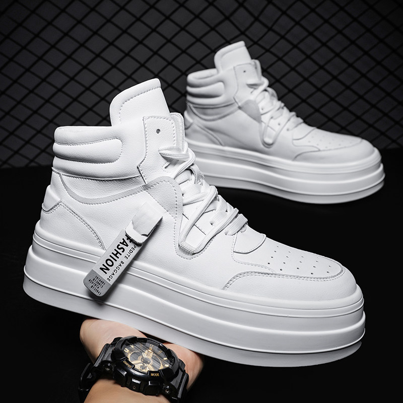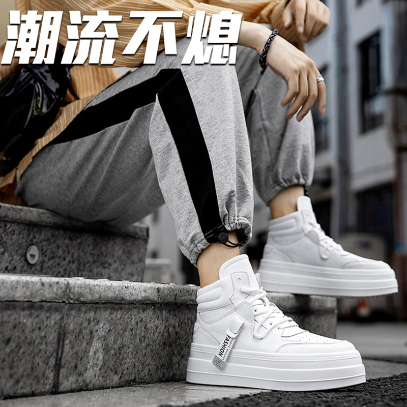 Small white shoes men high-aid shoes Han edition trend and white students shoes men thick soles increase sneakers