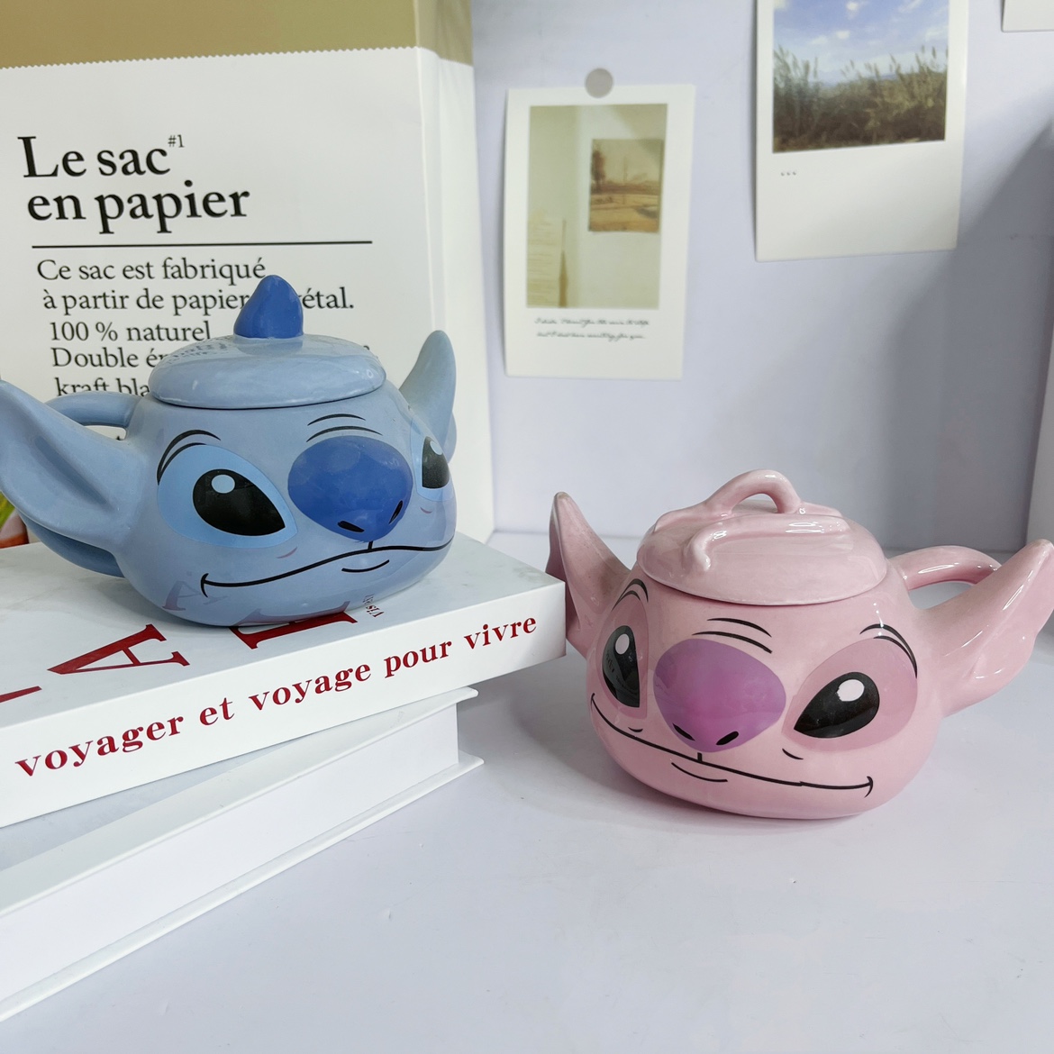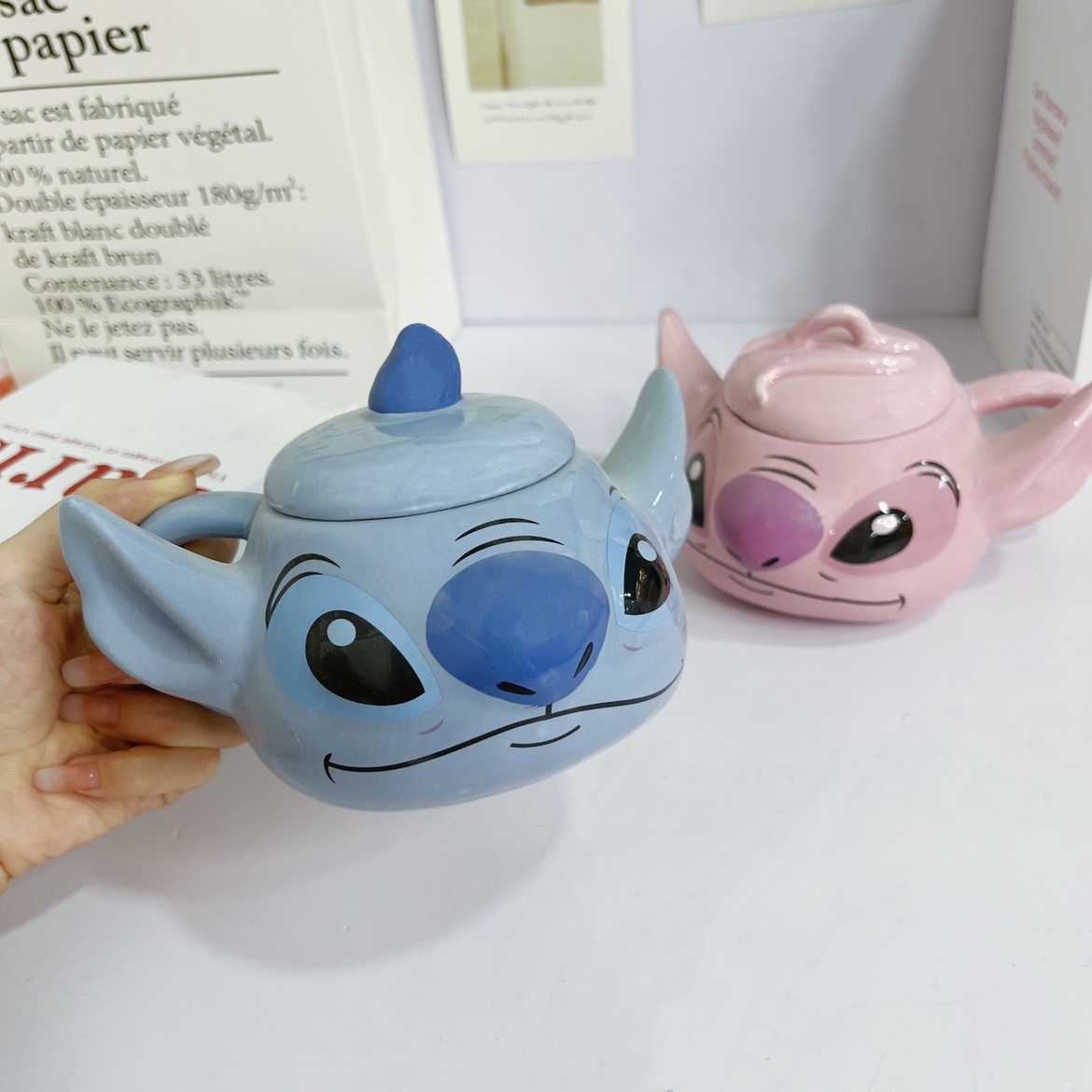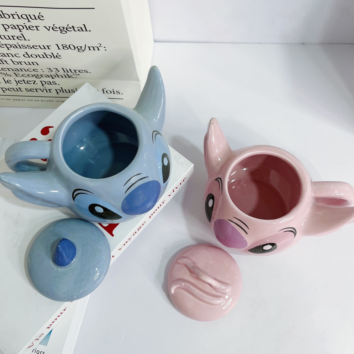 Stitch Cup with Lid (350ml) Angel Cup with Lid (350ml) Stitch Angel Cup Set (with Lid) Ceramic Handmade with Slight Defects