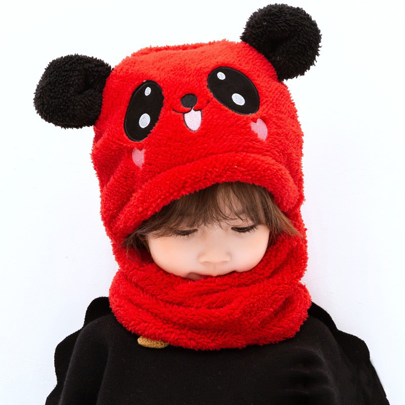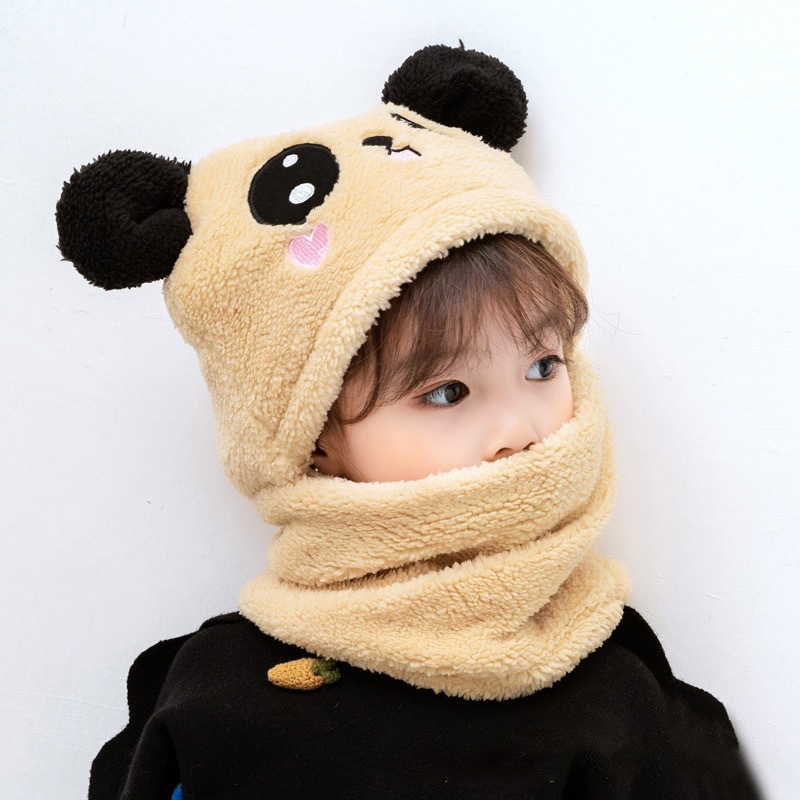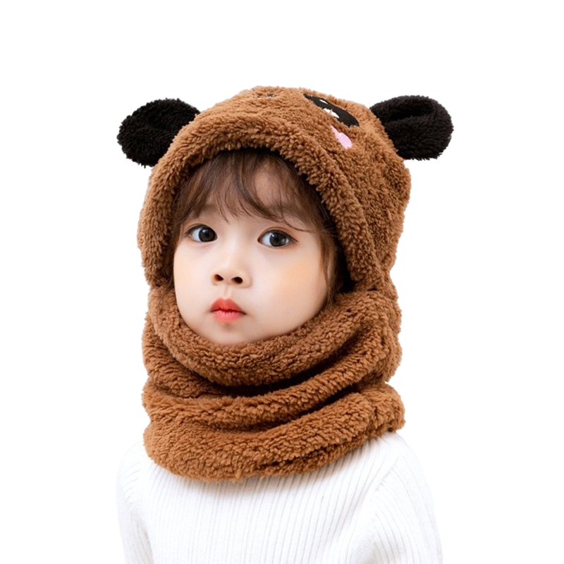 Children's hat autumn and winter boys and girls ear protection hat scarf one cute super cute baby hat plus velvet ear cotton hat