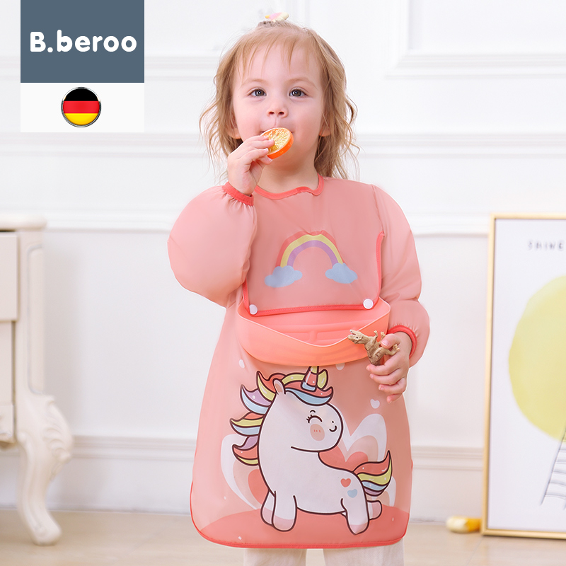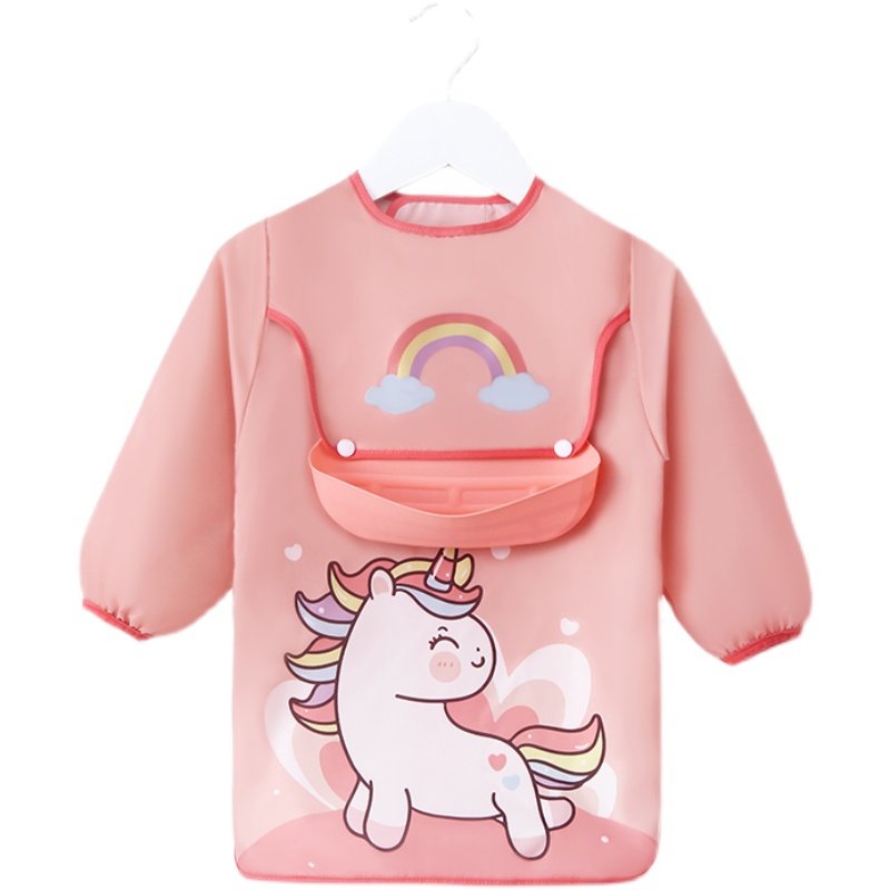 Overcoat girl treasure to eat kindergarten spring, autumn and winter bib waterproof, oil-proof and dirty children's reverse wear boy long-sleeved wash-free