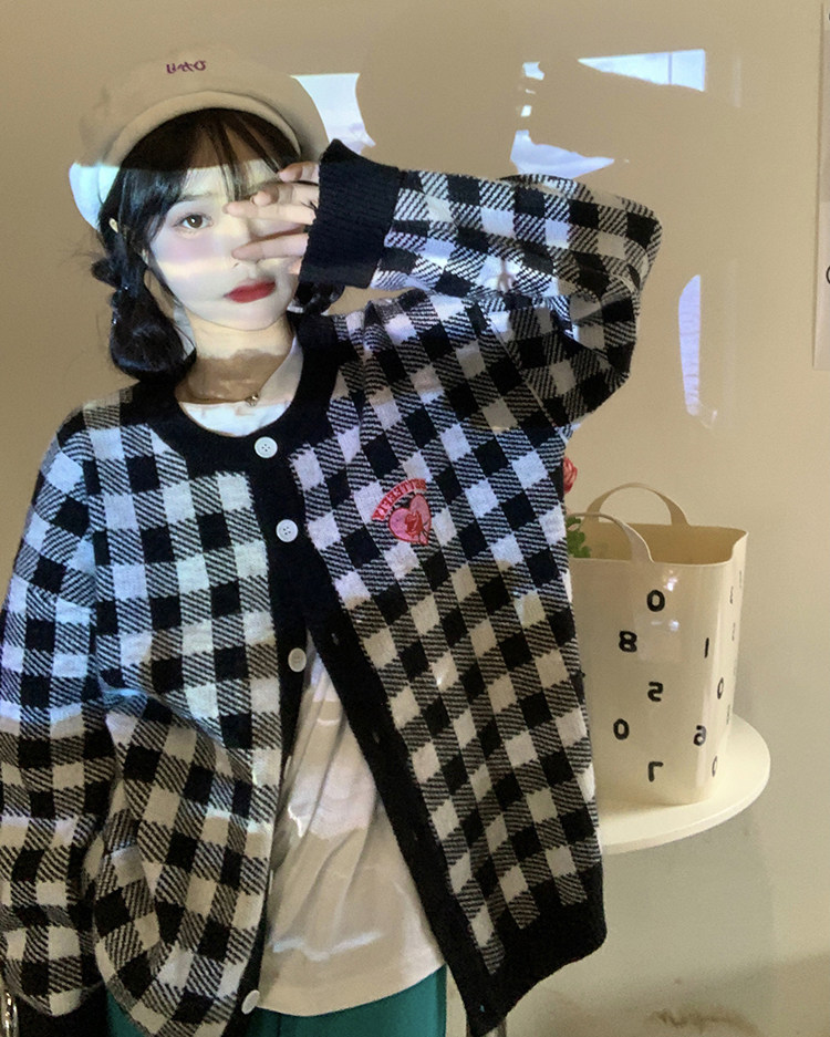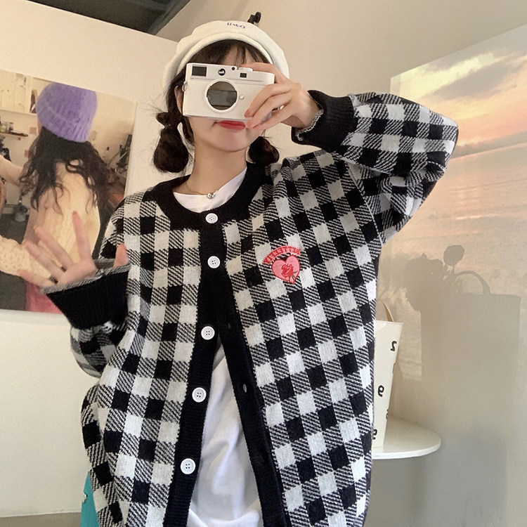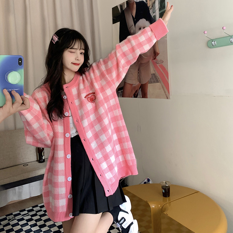 Sweater jacket knitted cardiovert woman dress Early autumn Winter Korean jacket Lazy Wind Soft Milk Blue Retro Day Ensemble