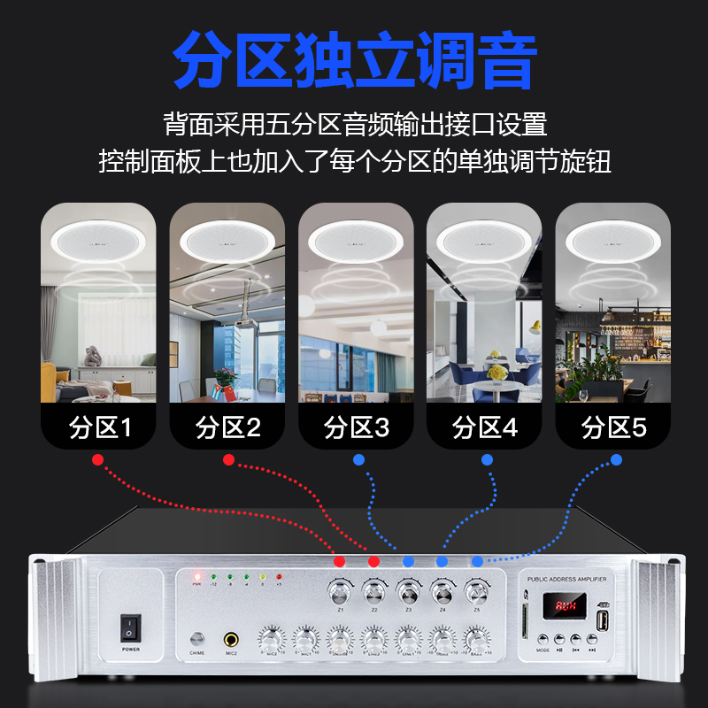 100W constant pressure Bluetooth power amplifier (no partition) 120W constant pressure Bluetooth power amplifier (two partition) 150W constant pressure Bluetooth power amplifier (four partition) 180W fixed pressure Bluetooth power amplifier (four