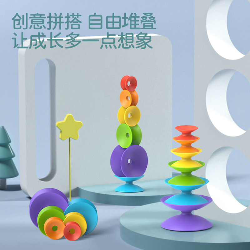 Children turn Tower Baby early teach color sleeves stack stacks pile of music Rainbow Baby Young Toys