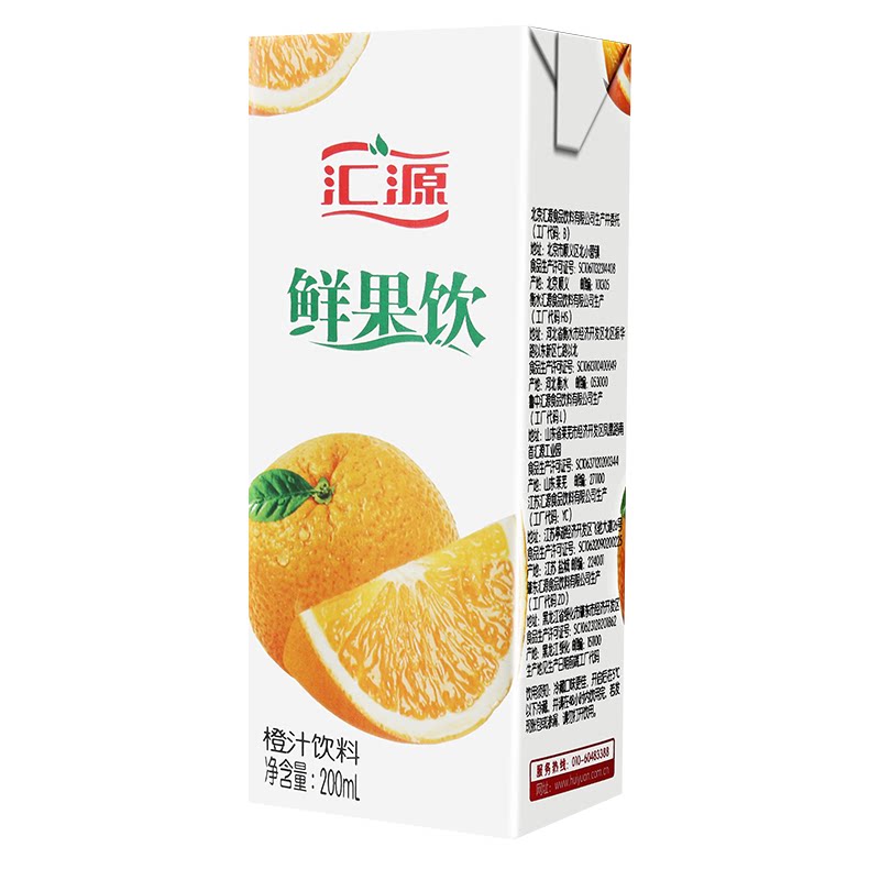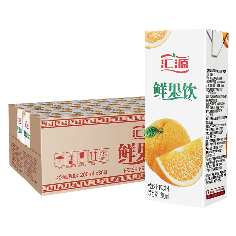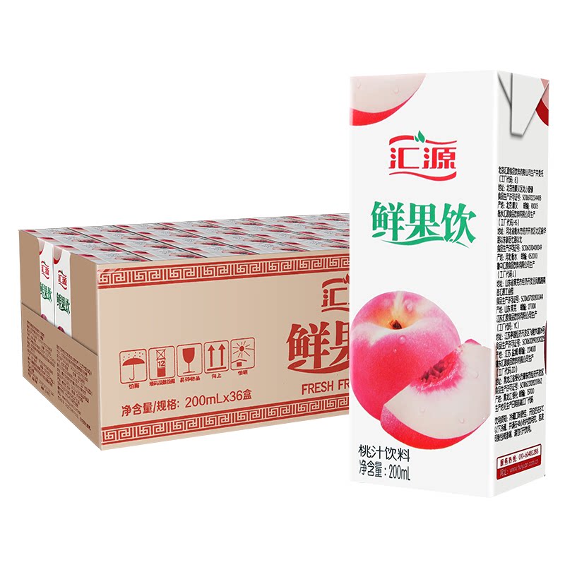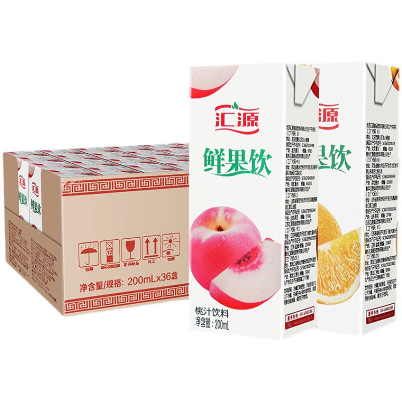 Huiyuan Fresh Fruit Drink Peach Juice Orange Juice Flavored Drink 200ml*36 Boxes FCL Special Price Summer Fruity Drink