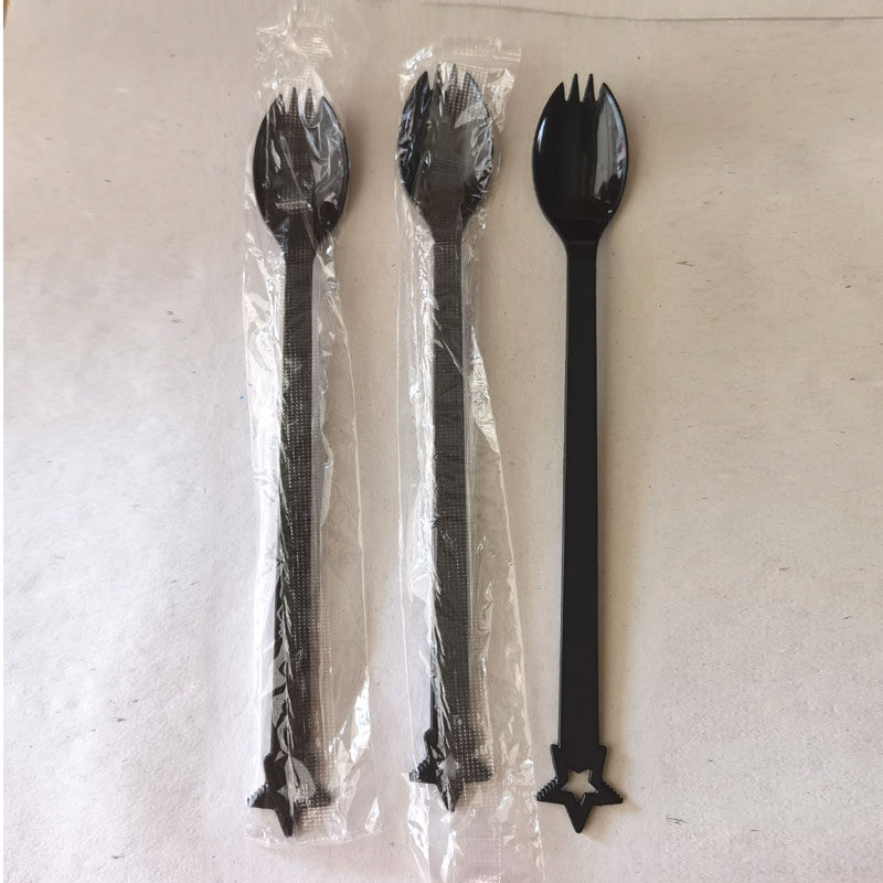 21cm fruit tea fork long handle disposable fruit fork independent packaging fork spoon milk tea fruit fishing thick and long fork