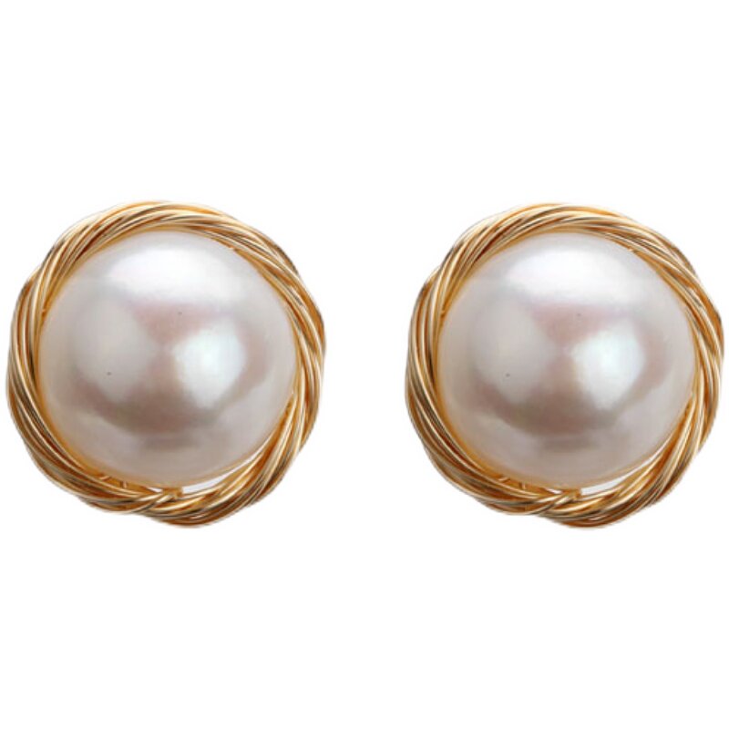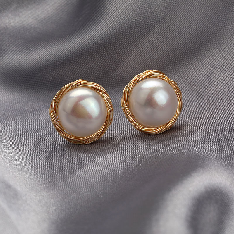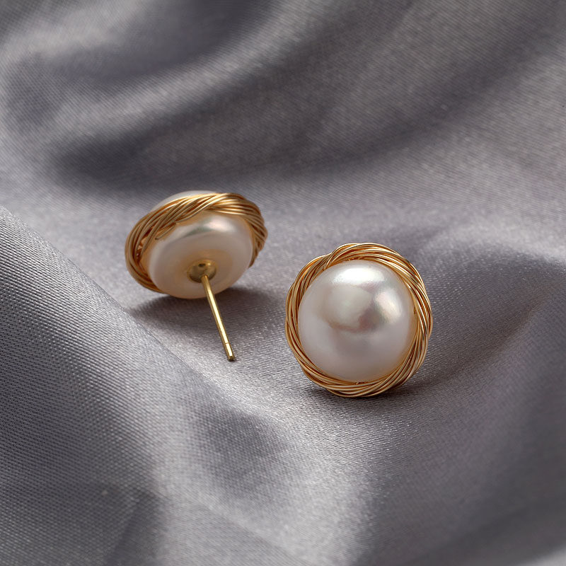 Fatal Gaze's natural pearl ear nails pure silver temperament earrings of the retro Heben wind simple ear