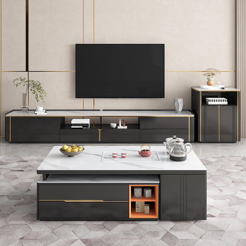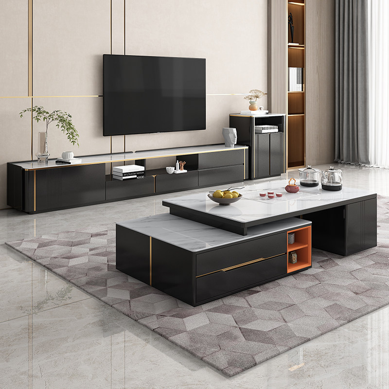 Tea table TV cabinet combination modern light luxury home living room simple large-scale high-end retractable rock slab coffee table table
