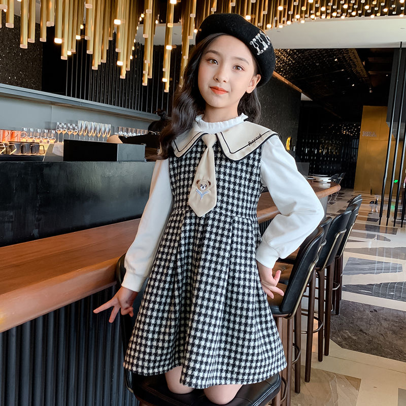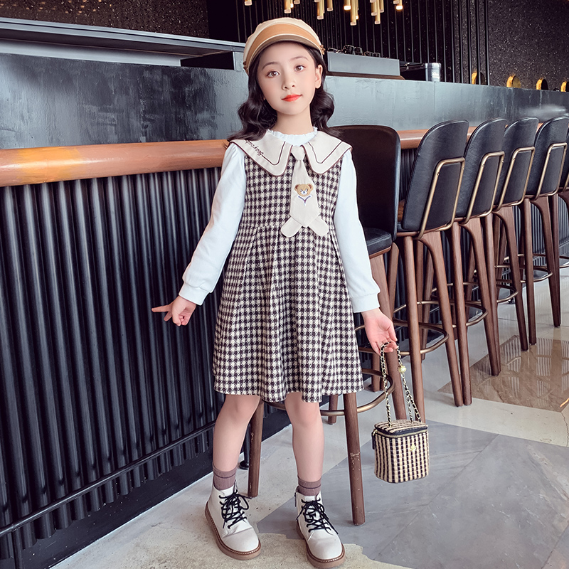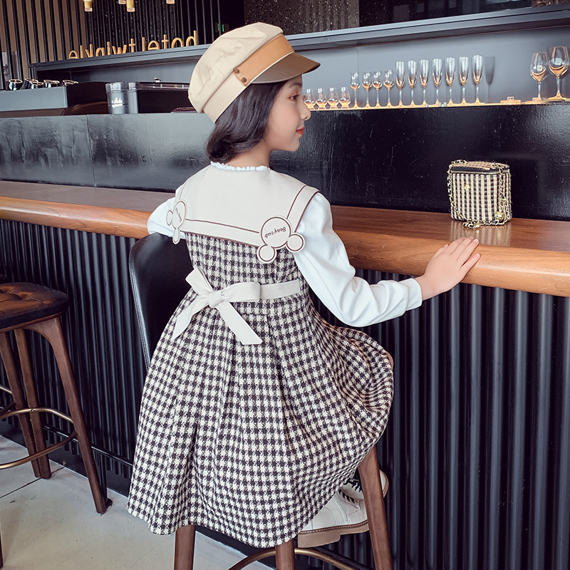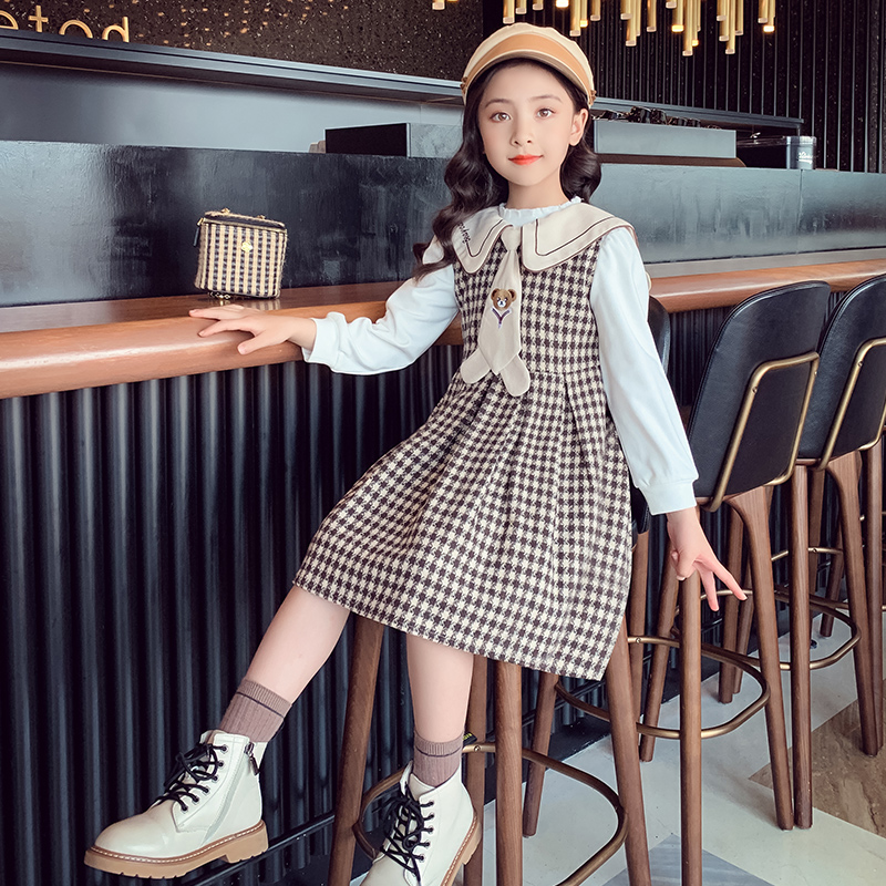 Girl Net Red Suit 2021 New Autumn Dress Foreign Pie Girl Dress Girl Skirt Spring Autumn Children CUHK Child Two Sets