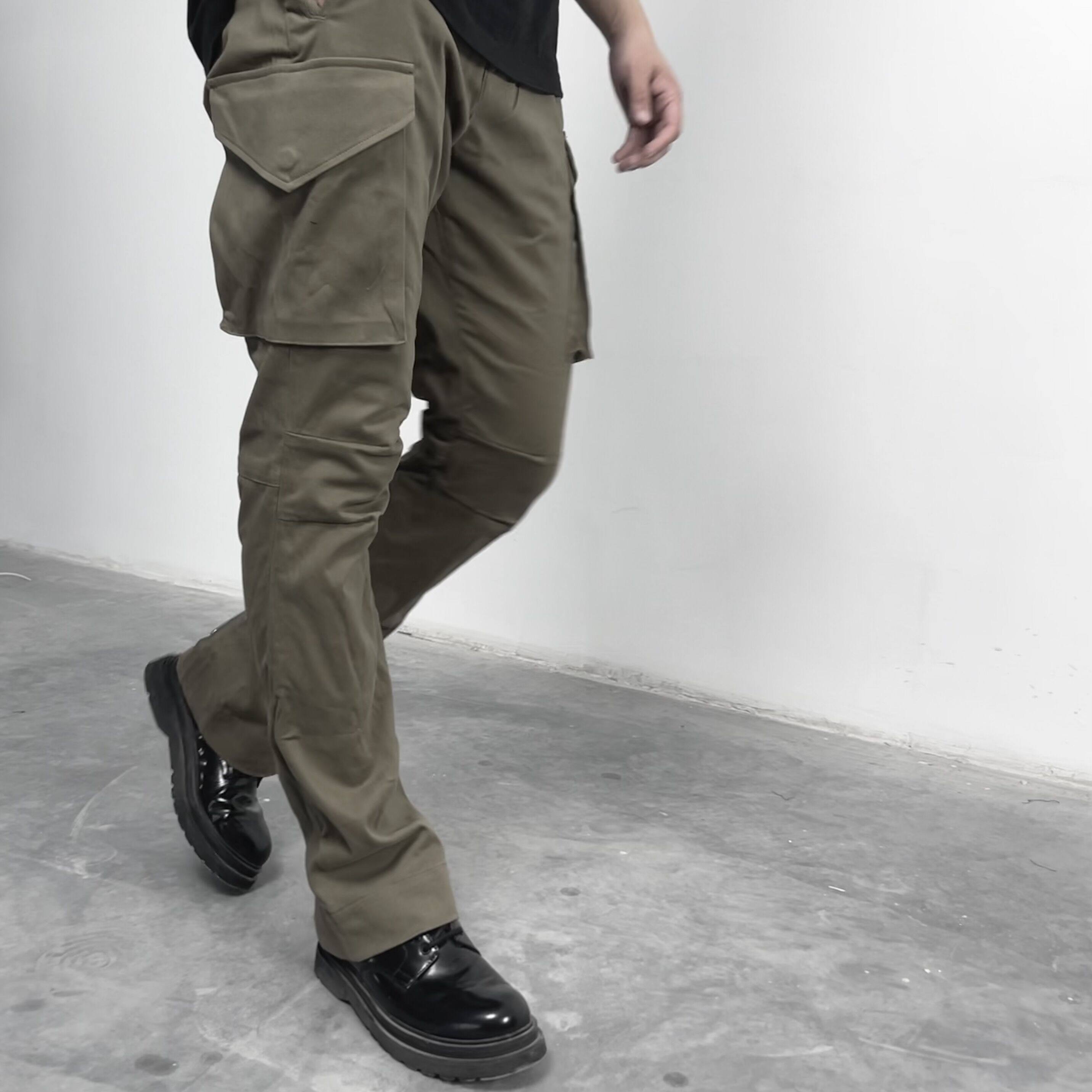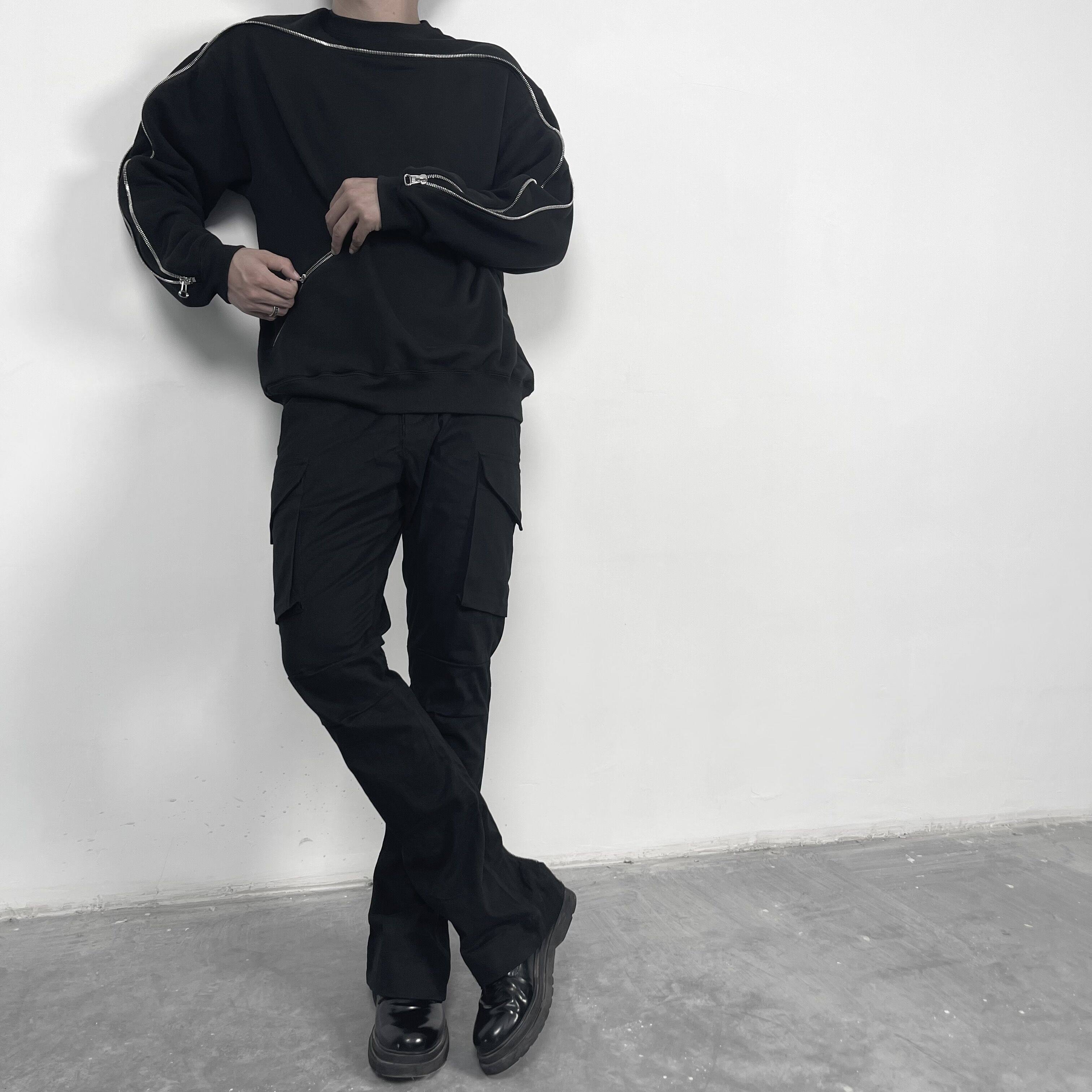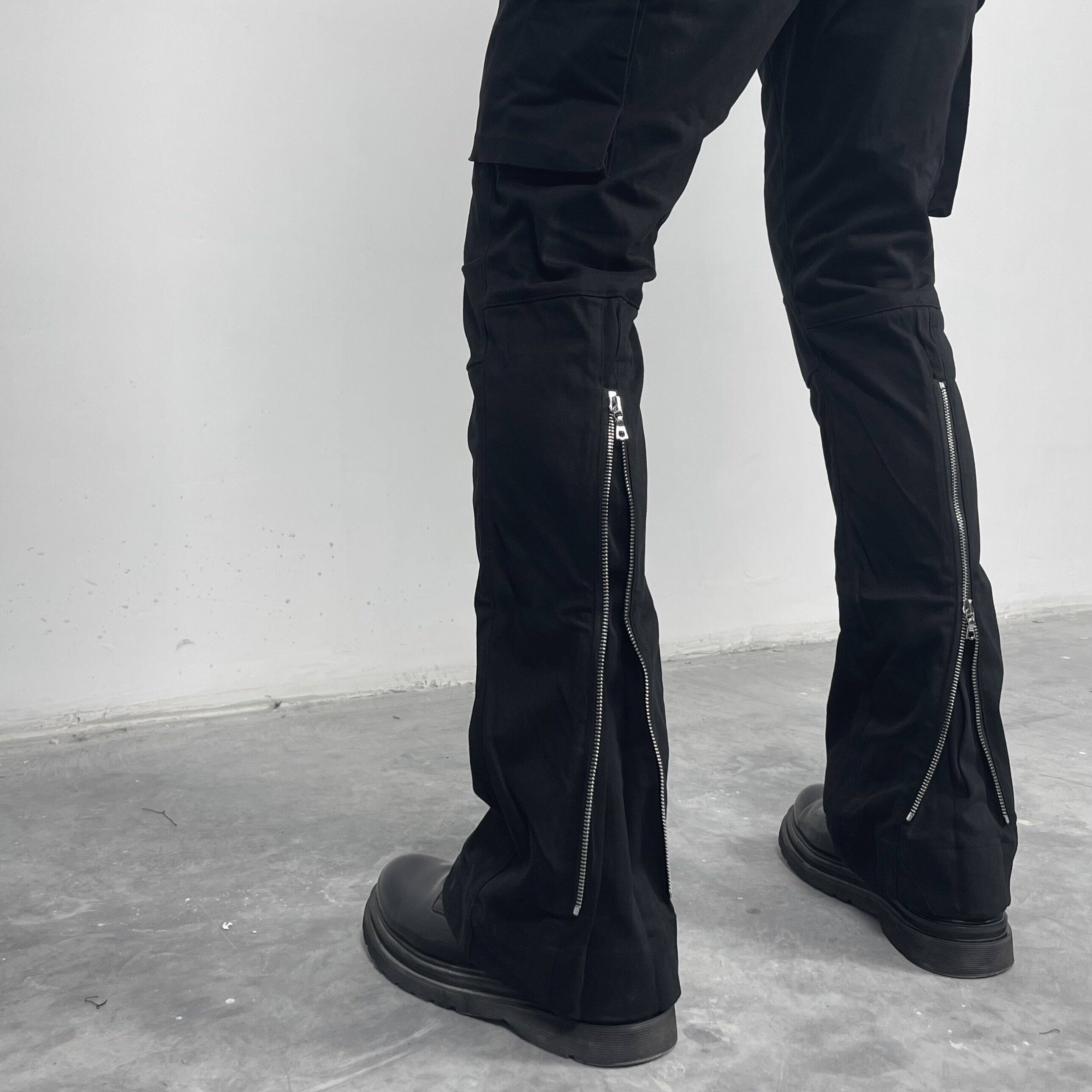 ROOLRREN cotton washed micro horn calf zipper kenijima same style vibe casual overalls trousers