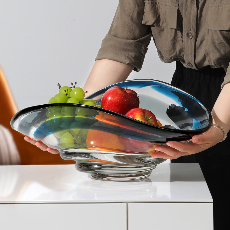 High-end light luxury glass fruit plate living room decoration European-style modern coffee table tray with snacks plate decorations