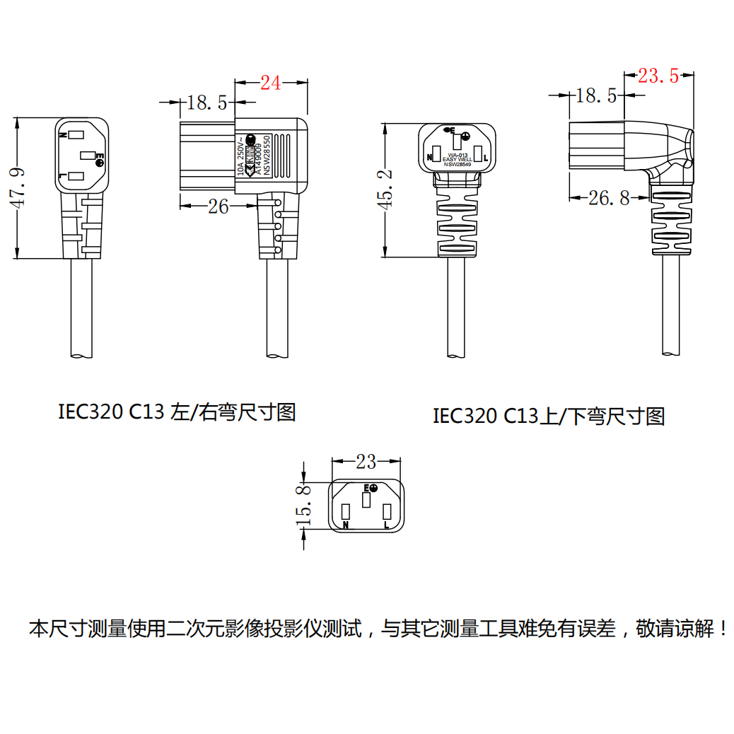 (10A straight head C13 upper bend) 0 75 square (10A straight head C13 lower bend) 0 75 square (10A elbow C13 upper bend) 0 75 square (10