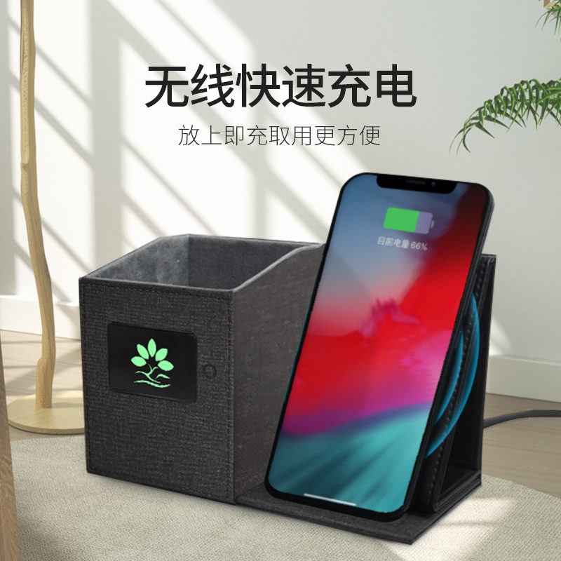Simple wireless fast charging pen holder custom luminous LOGO storage box for Apple Huawei office desktop