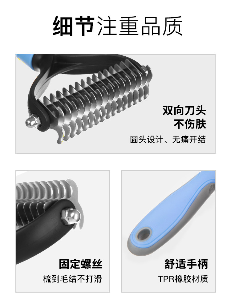 Pet grooming comb nail rake comb pet hair removal dog hair open section supplies double-sided knot rake comb brush needle comb