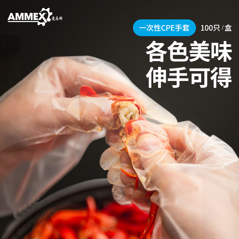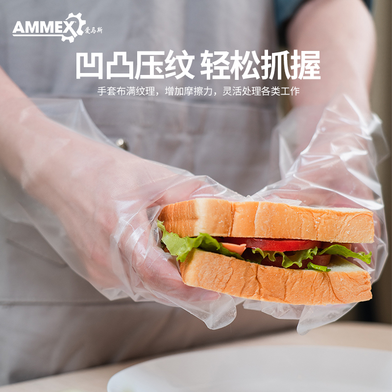 Aimas disposable gloves food-grade household kitchen crayfish thickened plastic transparent film baking gloves
