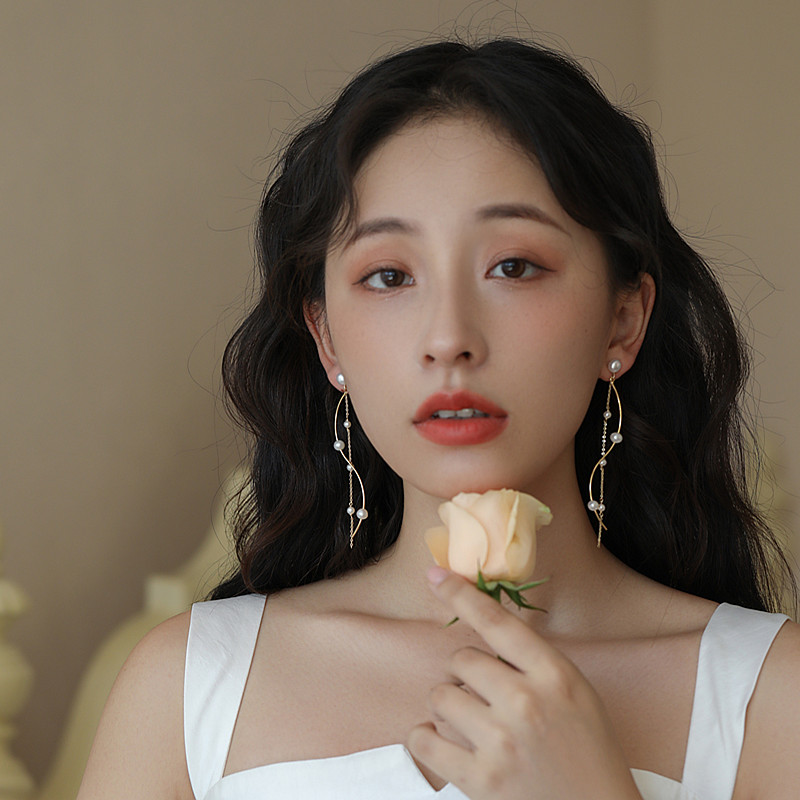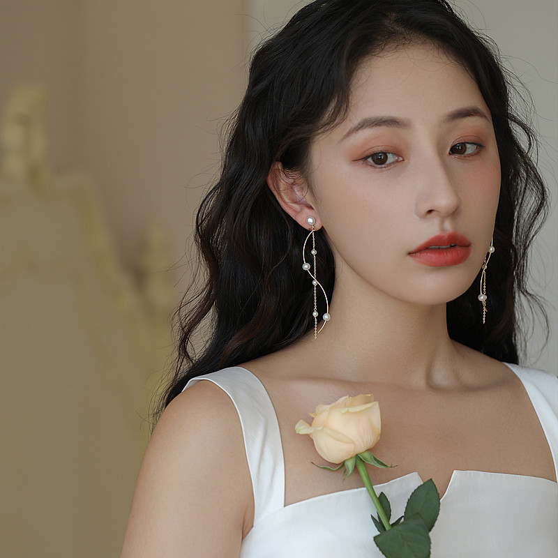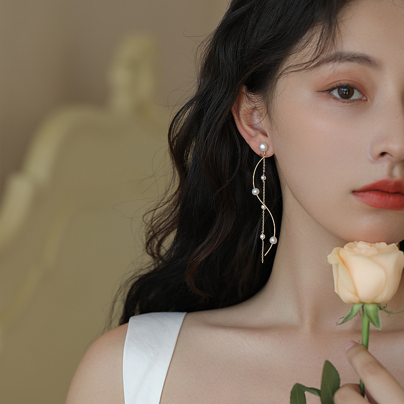 Original Design Pearl Earrings Xianqi Elegant Streaming Su Long Version Temperament Round Face Display Slim Superior Sens Ear Clip