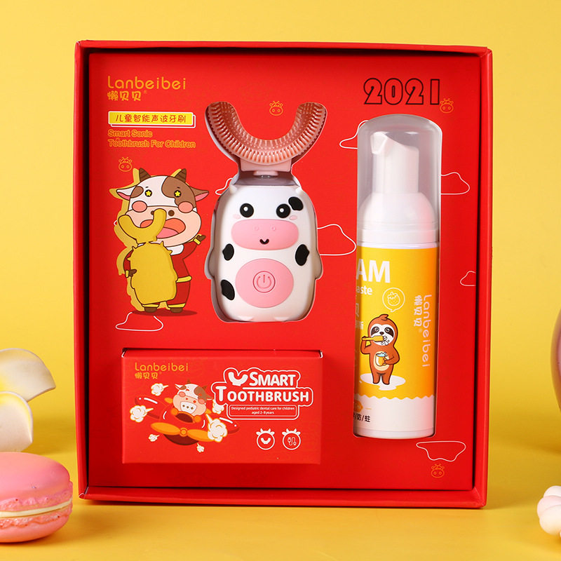 Lazy Beibei Children's Electric Toothbrush Sonic U-shaped Silicone Infant Toothbrush Boys and Girls Gifts Toothpaste Gift Box