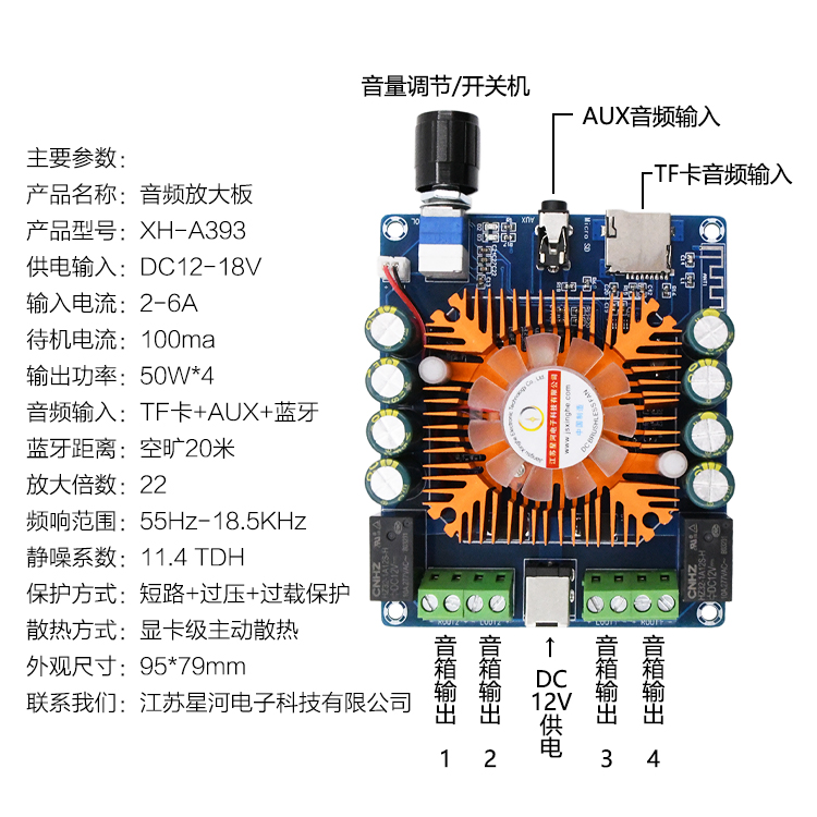 XH-A393 on-board sound retrofit Bluetooth digital power amplifier board power foot TDA7388 original dress imported 50W* 4