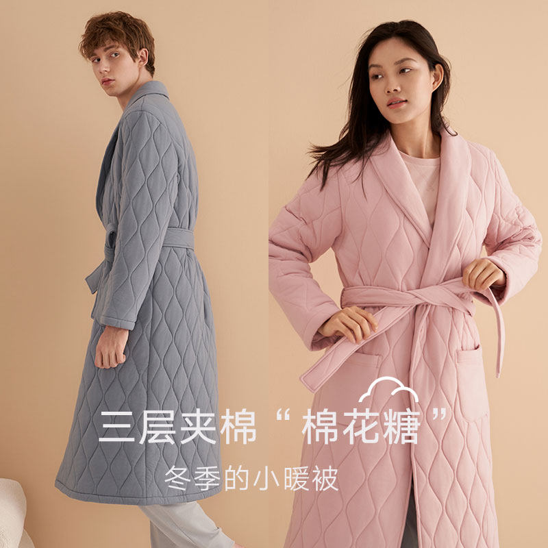Manny Finn cotton quality living knit pyjamas thickened quilted cotton flap open flap long sleeve female pyjamas male couple's home clothes-Taobao