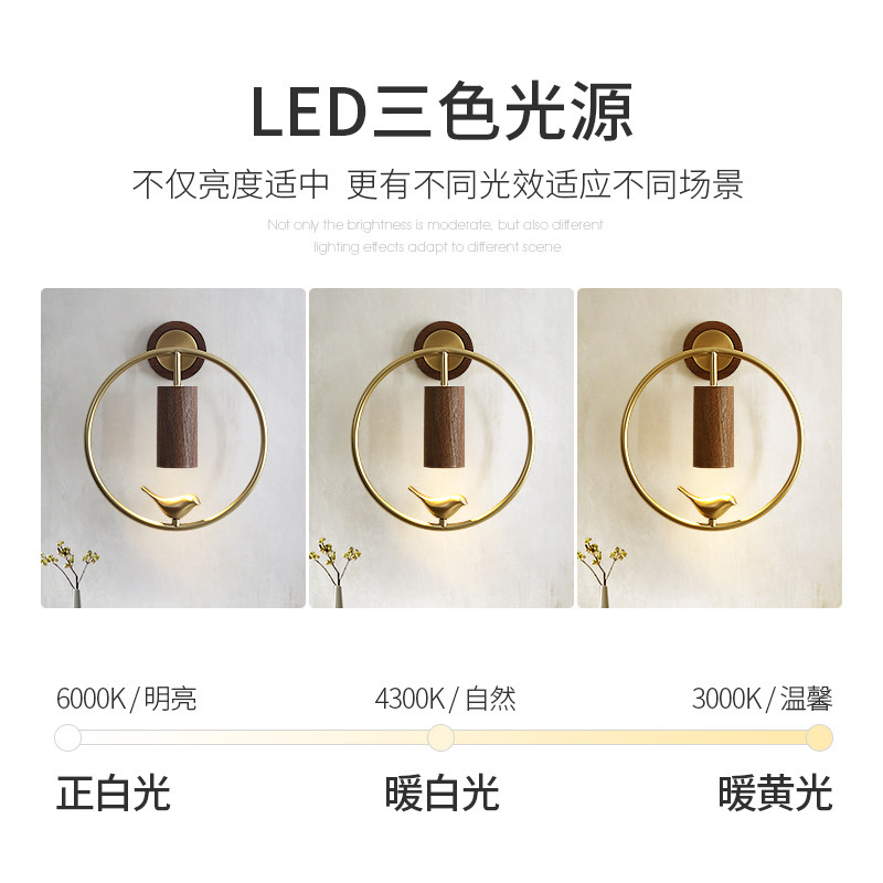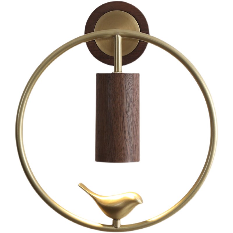 Small Bird Wall Lamp-Walnut Wood Copper-Warm Light Small Bird Wall Lamp-Raw Wood Color Bronze-Warm Light