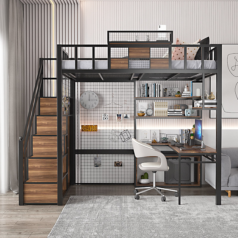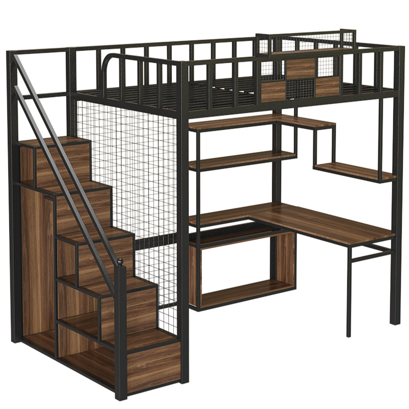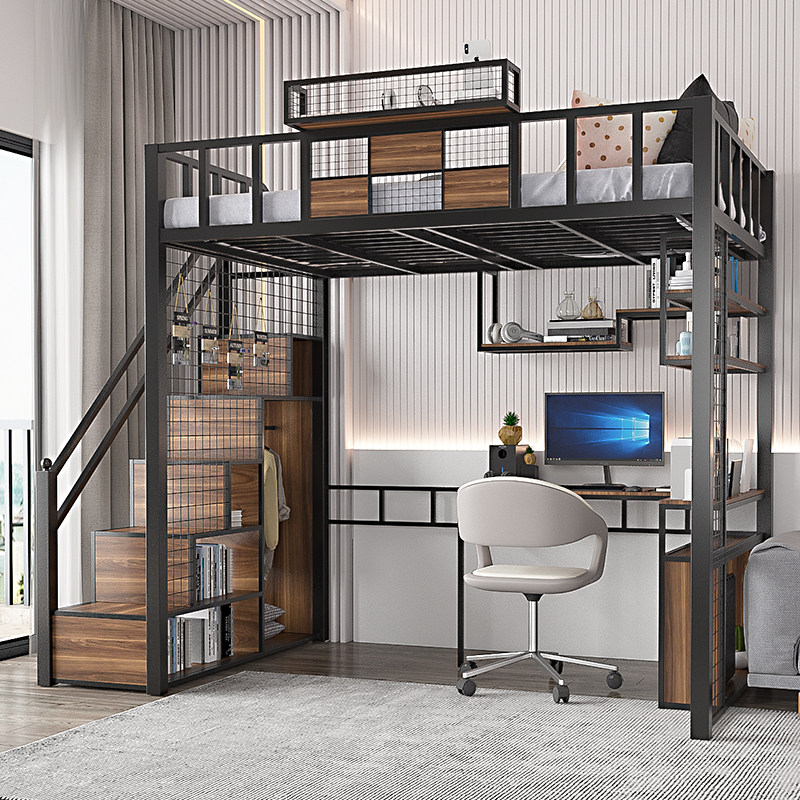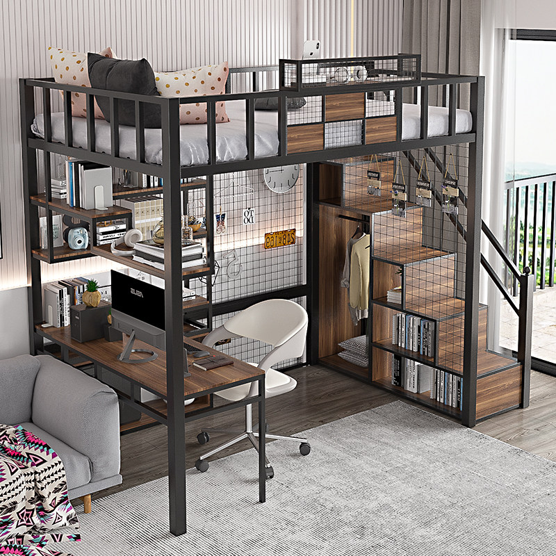 Super value with computer desk, bookshelf, wardrobe, high bed, environmental protection, 5CM brown pad, size and color, support customization, order, please consult customer service to note the direction of the bed