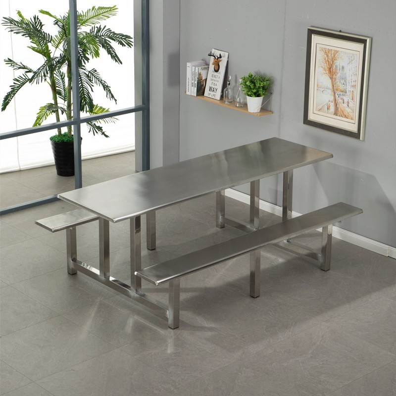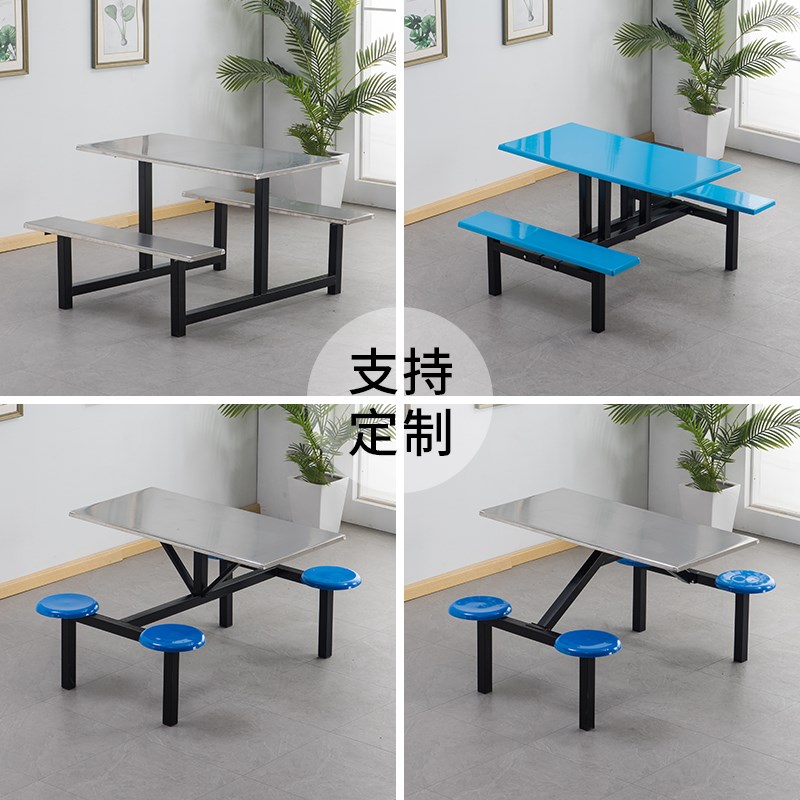 Canteen dining table and chairs stainless steel one-piece fast dining table and chair combination factory school students 4 people 6 people 8 people dining table