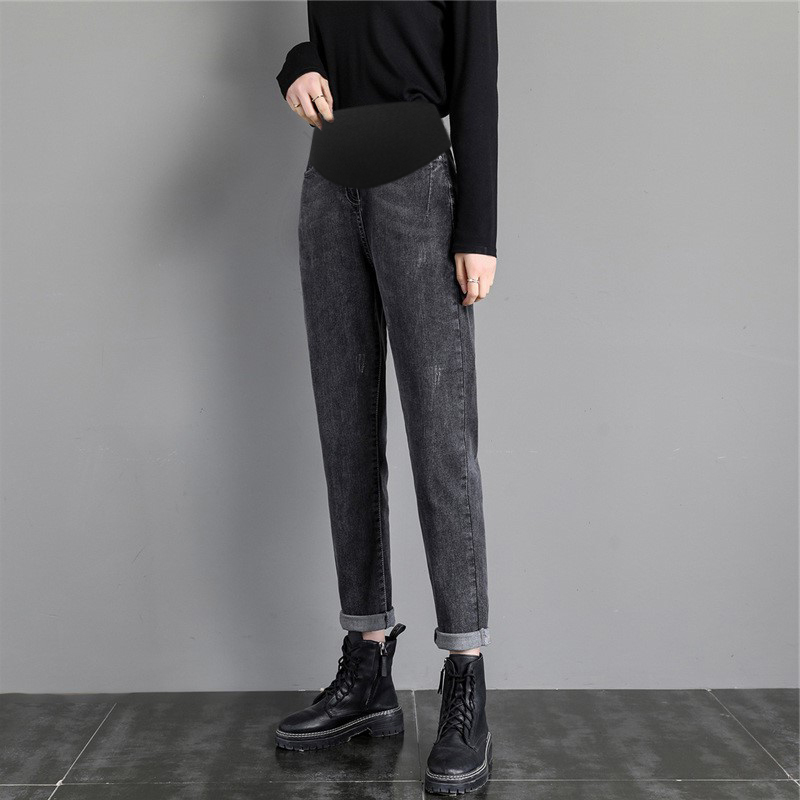 Maternity pants winter plus velvet thickening loose belly support old pants small maternity clothes spring and autumn outside wear rob jeans