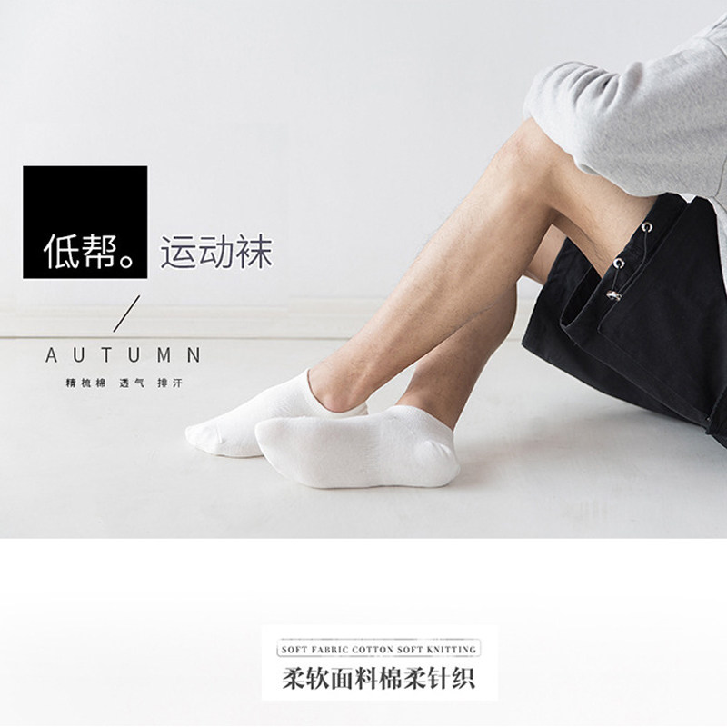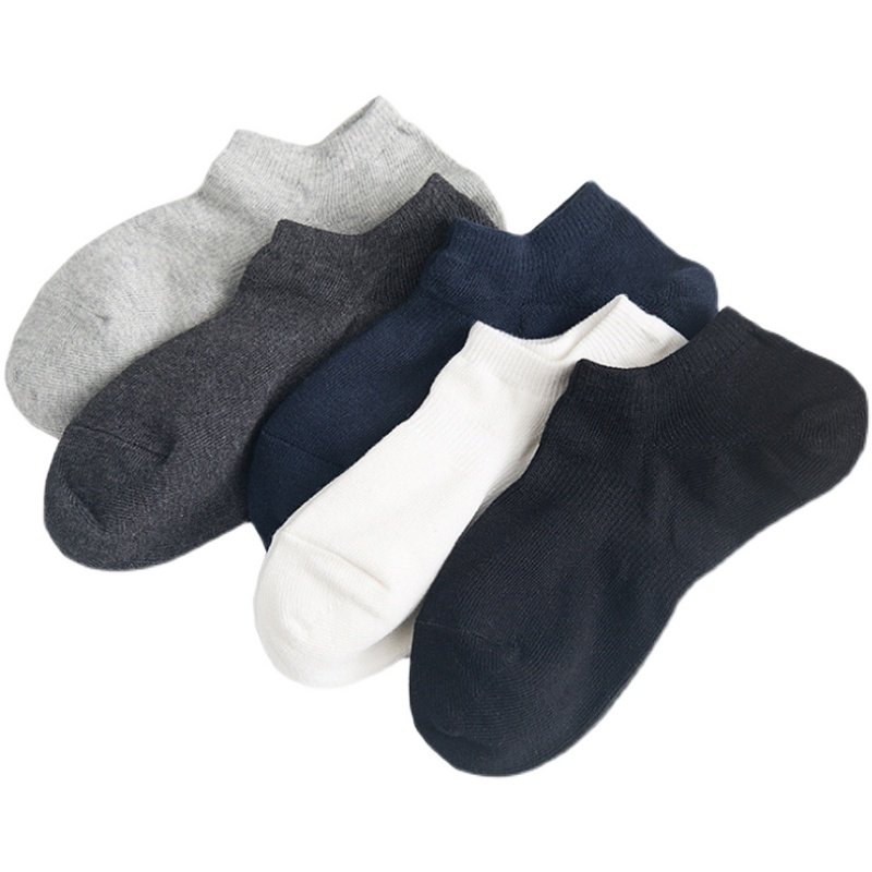 5 Double Loaded Socks Men Combed Cotton Right Angle Large Heel Men's Black And White Grey Invisible Socks Suction Sweats Running Big Size Sports Socks