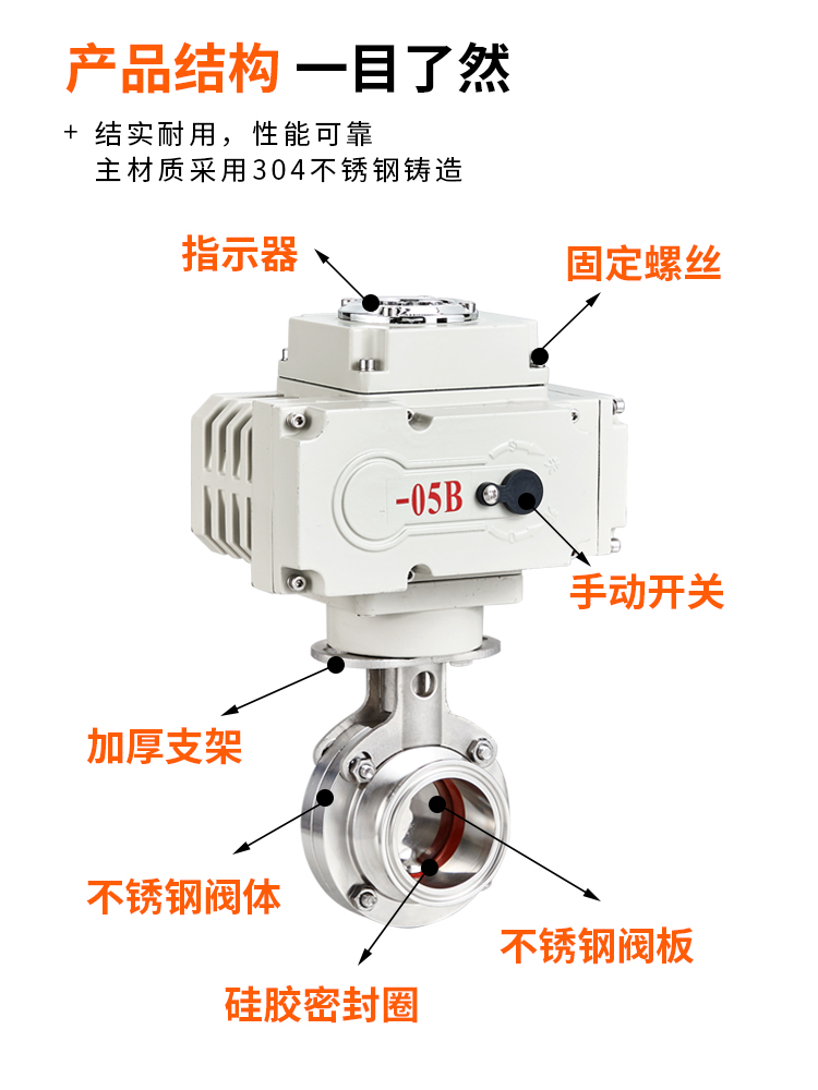 D981X304 stainless steel electric fast-mounted butterfly valve sanitary level quick opening clamp-type collet electric valve