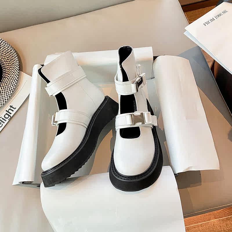 Martin boots woman 2022 new thick bottom short boots Pine Cake Hollowed-out with buckle white sweet and cool style Fashion Cool Boots