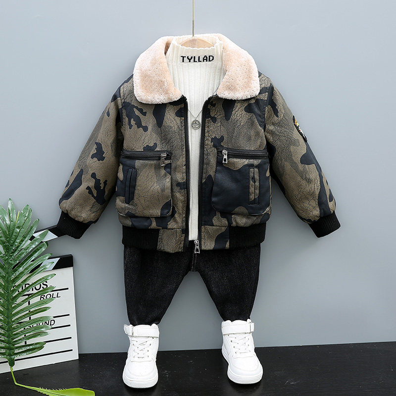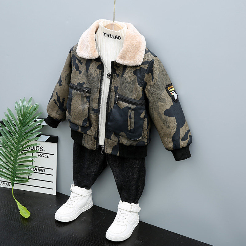 Children's plus coat in autumn and winter 2021 baby's Han - Edition jacket camouflage boy winter clothing thickened children's clothing