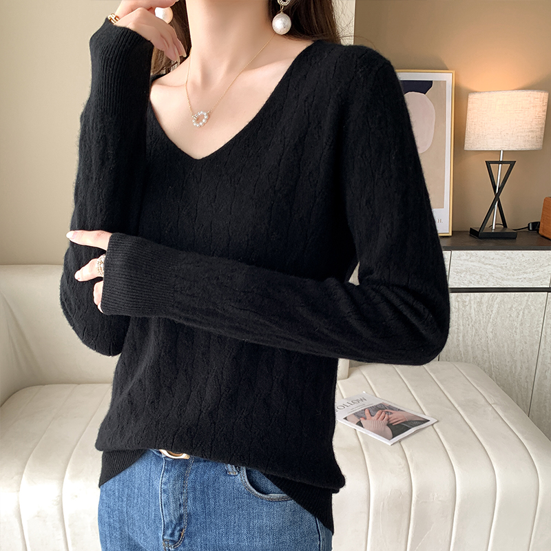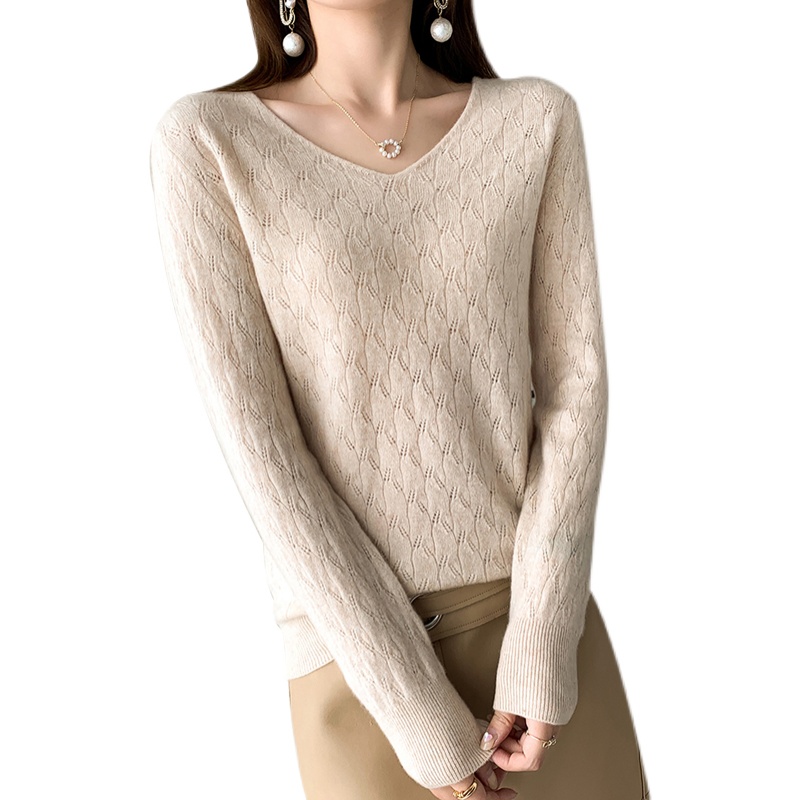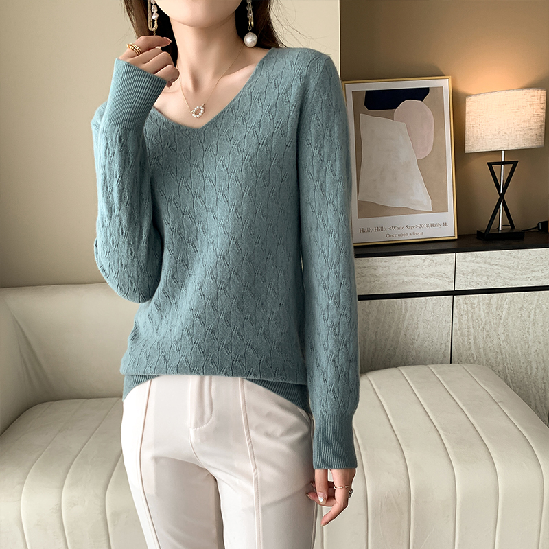 New 100 pure wool knitted in autumn and winter with long sleeves in hollowed sweater
