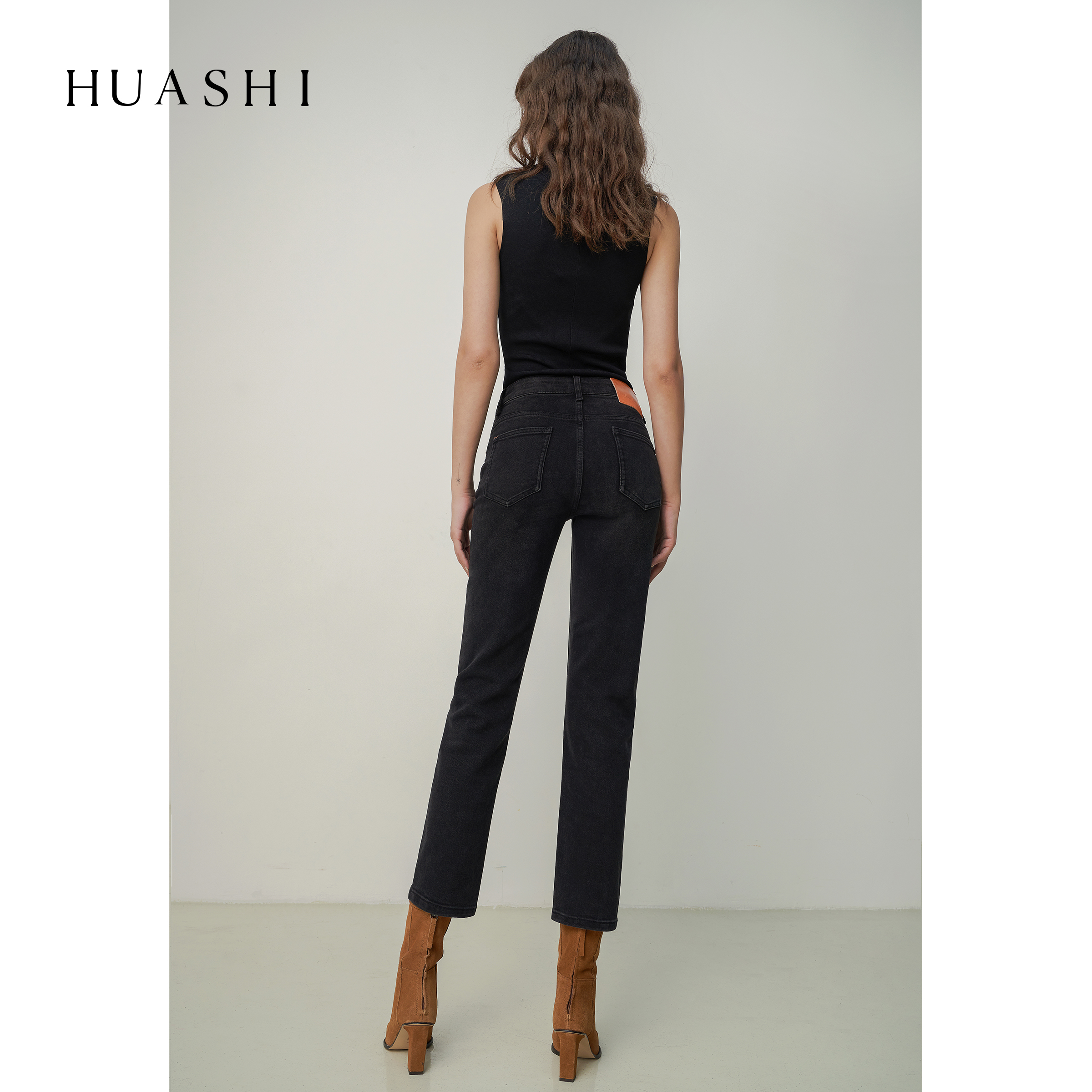 Huashi texture black jeans female mens thin senior French vintage plus plus tub pants winter