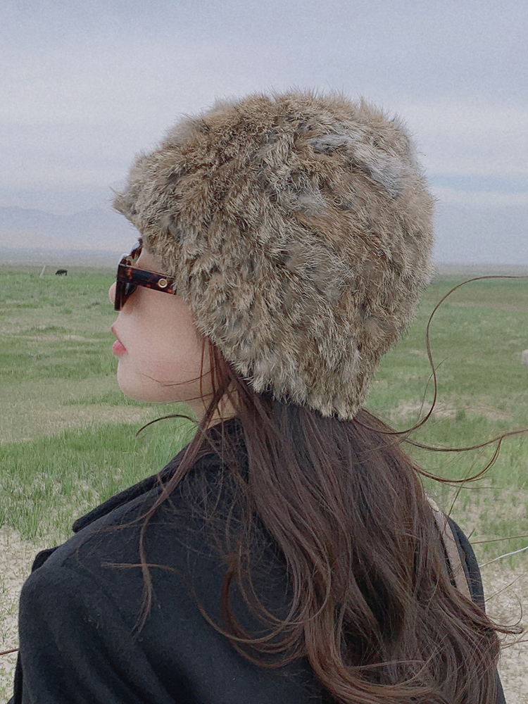 Japanese AREC fur hat women's autumn and winter fashion show temperament warm ear protection thickened warm winter rabbit fur hat