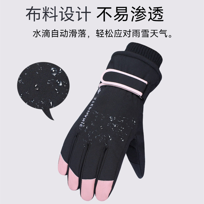 Touch screen waterproof ski gloves female winter lovely anti-chill warm plus suede thickened cotton riding male locomotive windproof