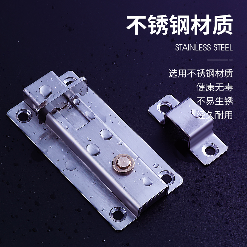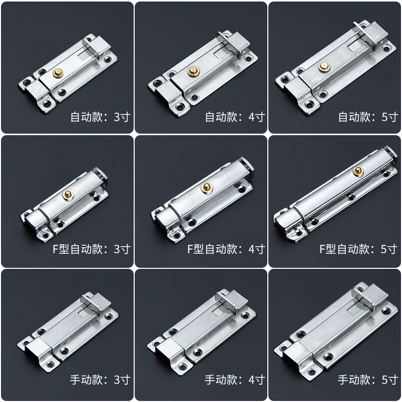 Stainless steel automatic spring bolt door lock make-up room door bolt door buttoned wood door left and right bolt lock Ming fitting door pin