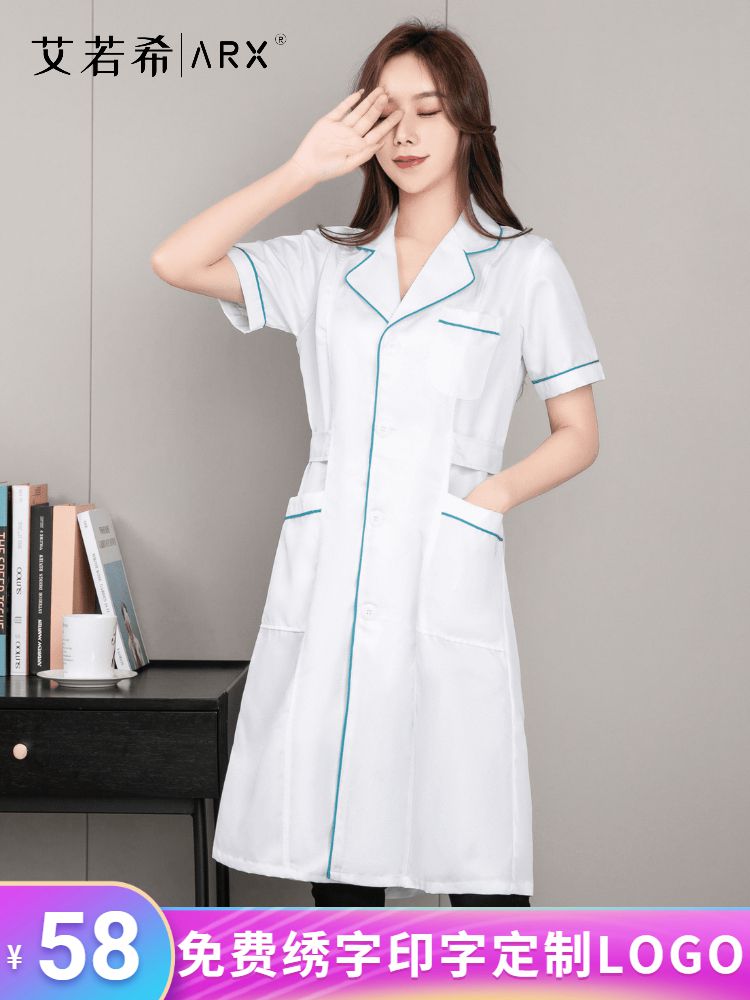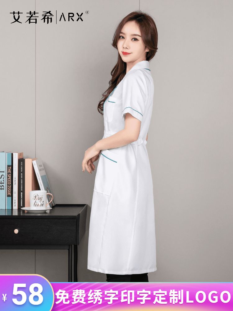 White anti-wrinkle beauty salon dress female sleeve white coat nurse dress skin manager short