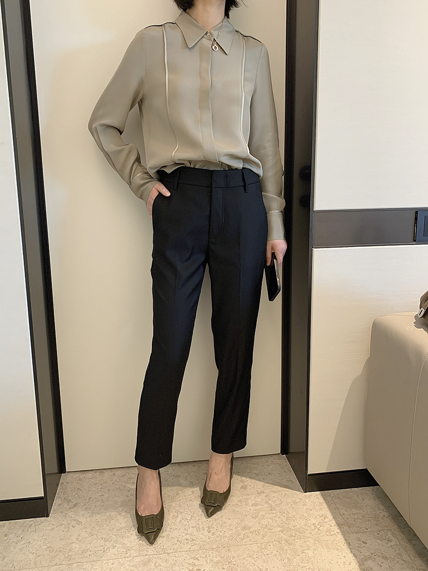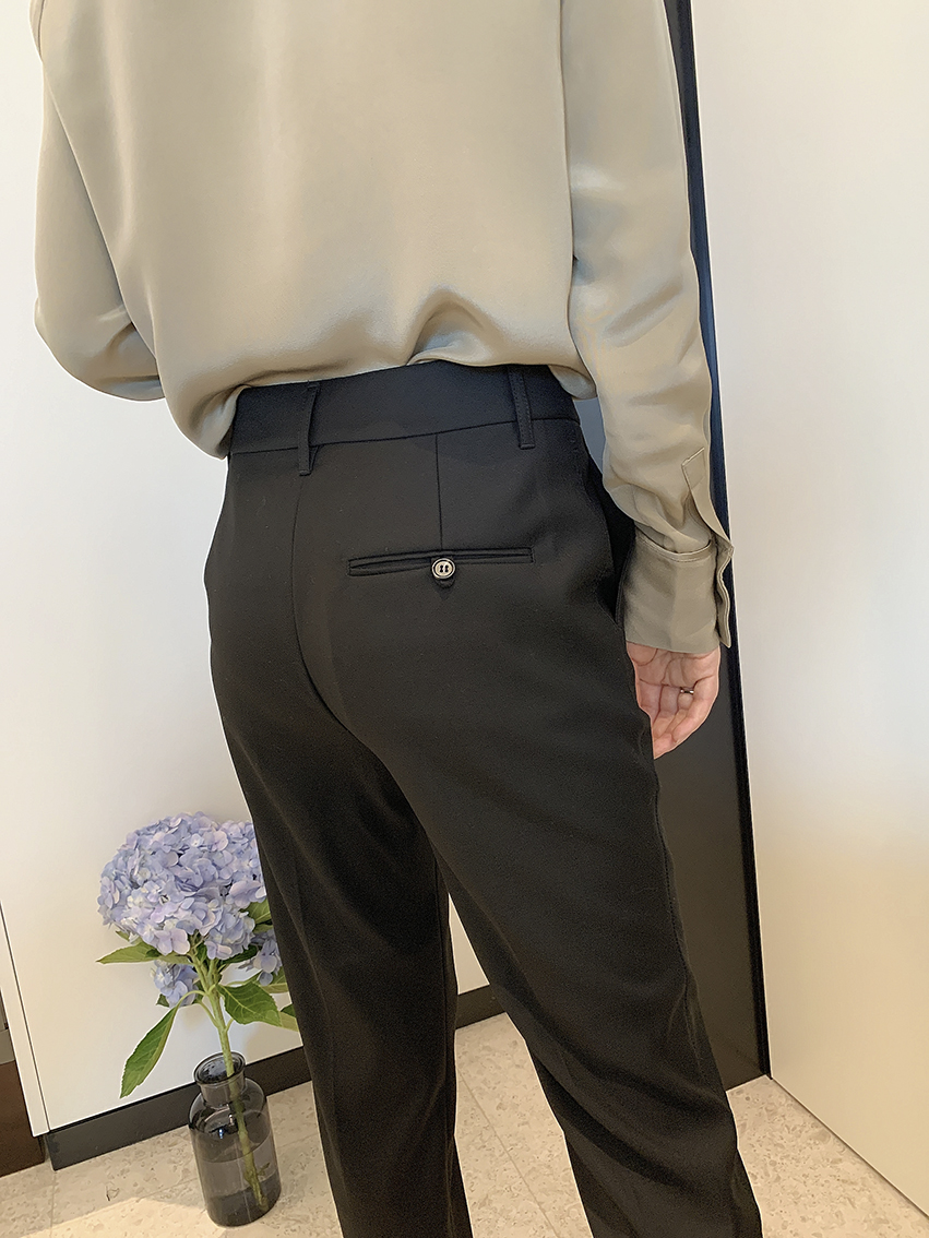FISH MOM Alcohol v1nce workplace sister bi accept this OL commuter black thin wool trousers dark blue