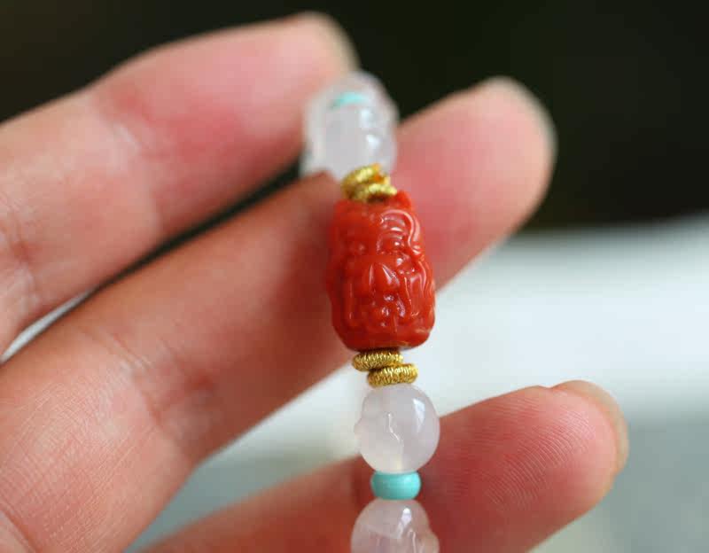 Natural South red Manau lychee frozen ice floating in a woman's style laughing Little Buddha's original design handstring vintage kitten