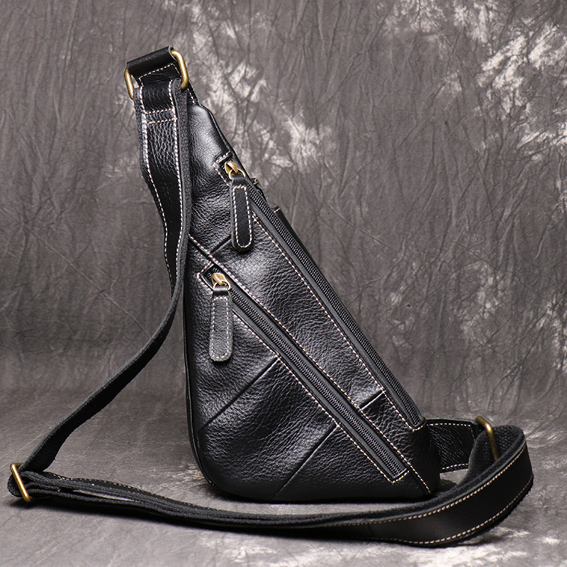 Casual Men's Chest Bag Small Slanted Satchel Satchel Genuine Leather 2021 New Fashion Head Layer Cow Leather Single Shoulder Chest Front Bag