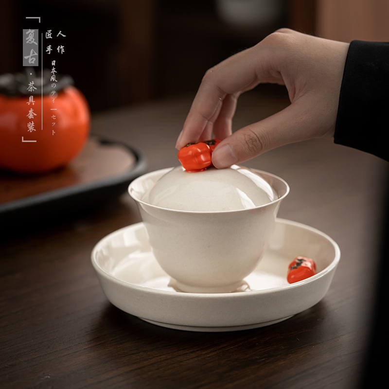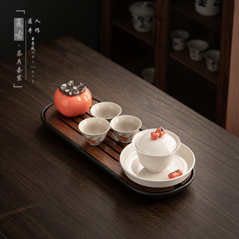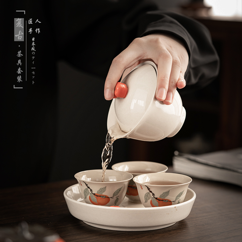 Japanese-style kung fu tea set set retro grass ash glaze home living room office cover bowl tea cup tea tray tea maker