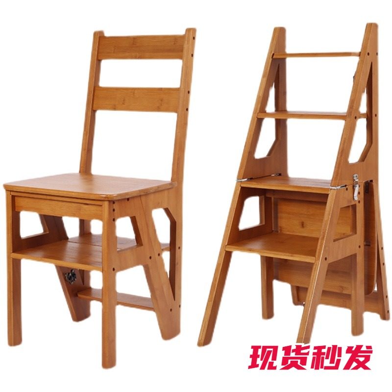 Bamboo and wood multi-functional step stool home indoor wooden folding thickened stair chair portable climbing dual-use step ladder
